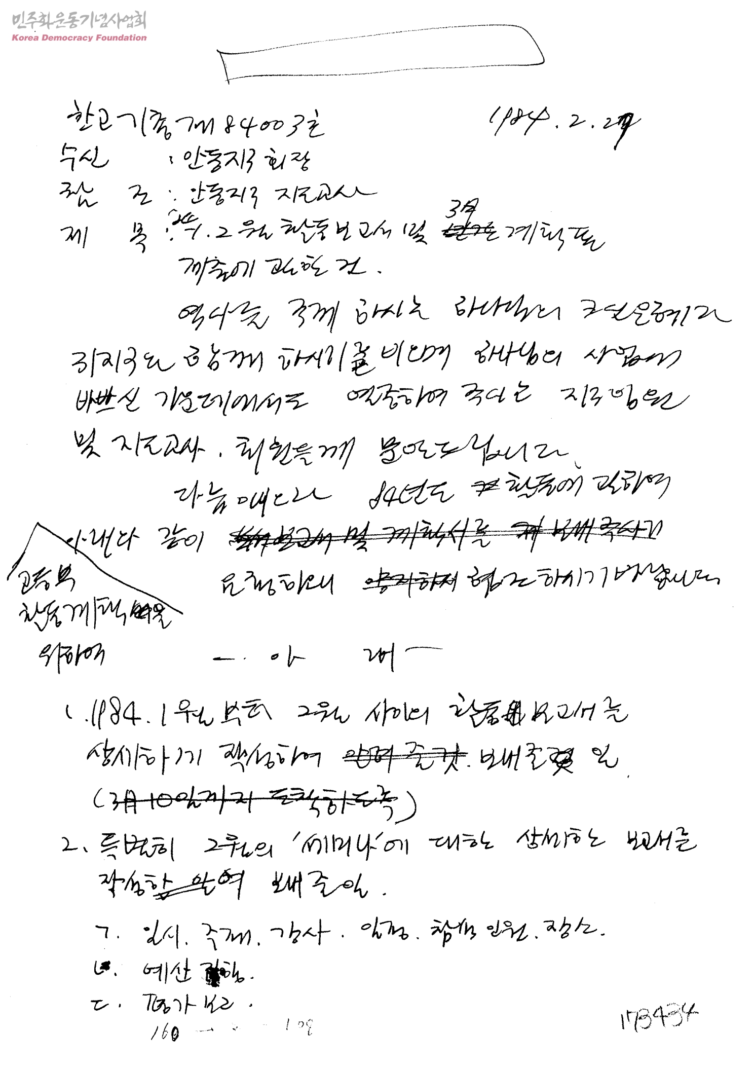 84.1ㆍ2월 활동보고서 및 3월 계획표 제출에 관한 건[수신:안동지구 지도교사]
