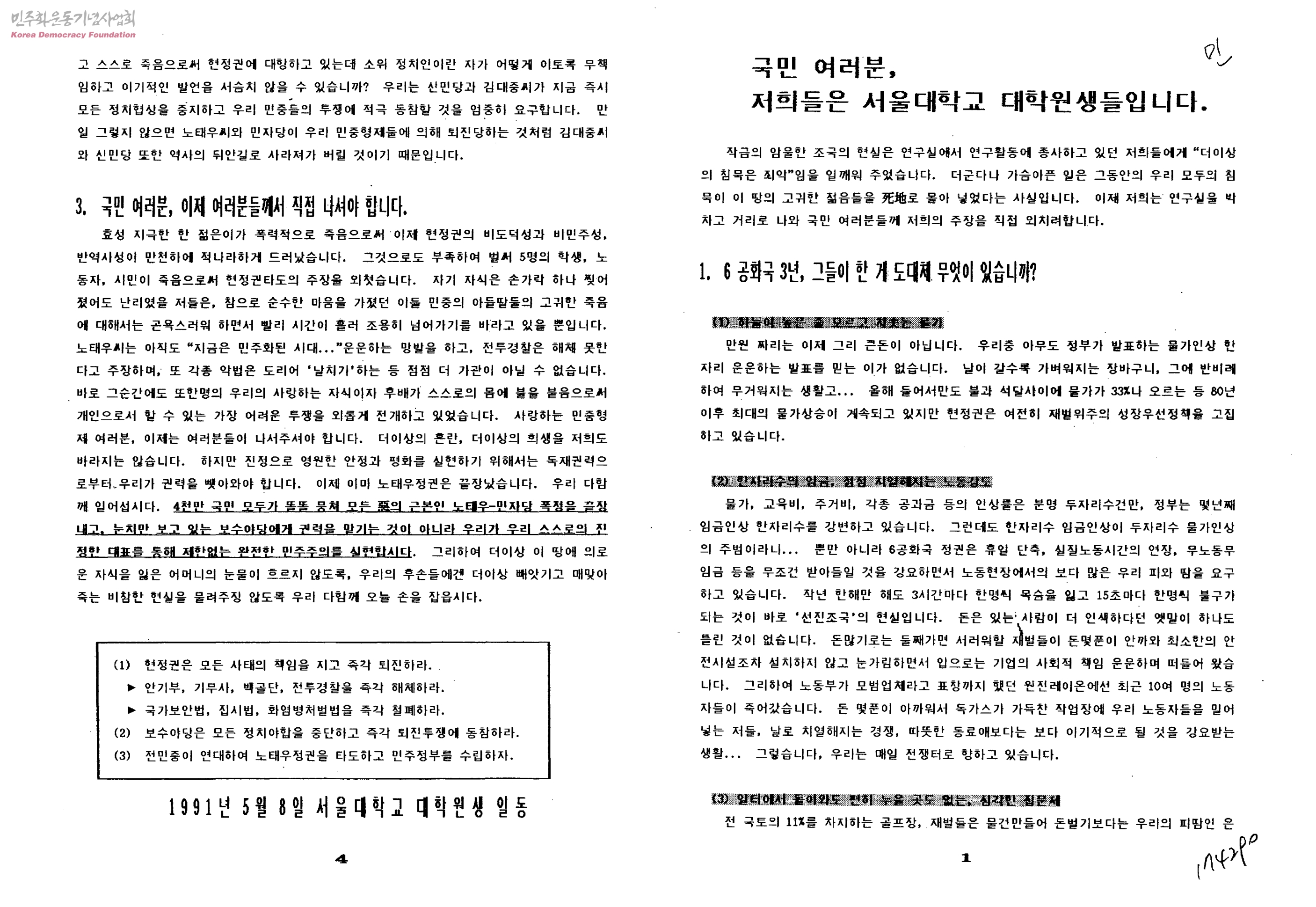 국민 여러분 저희들은 서울대학교 대학원생들입니다