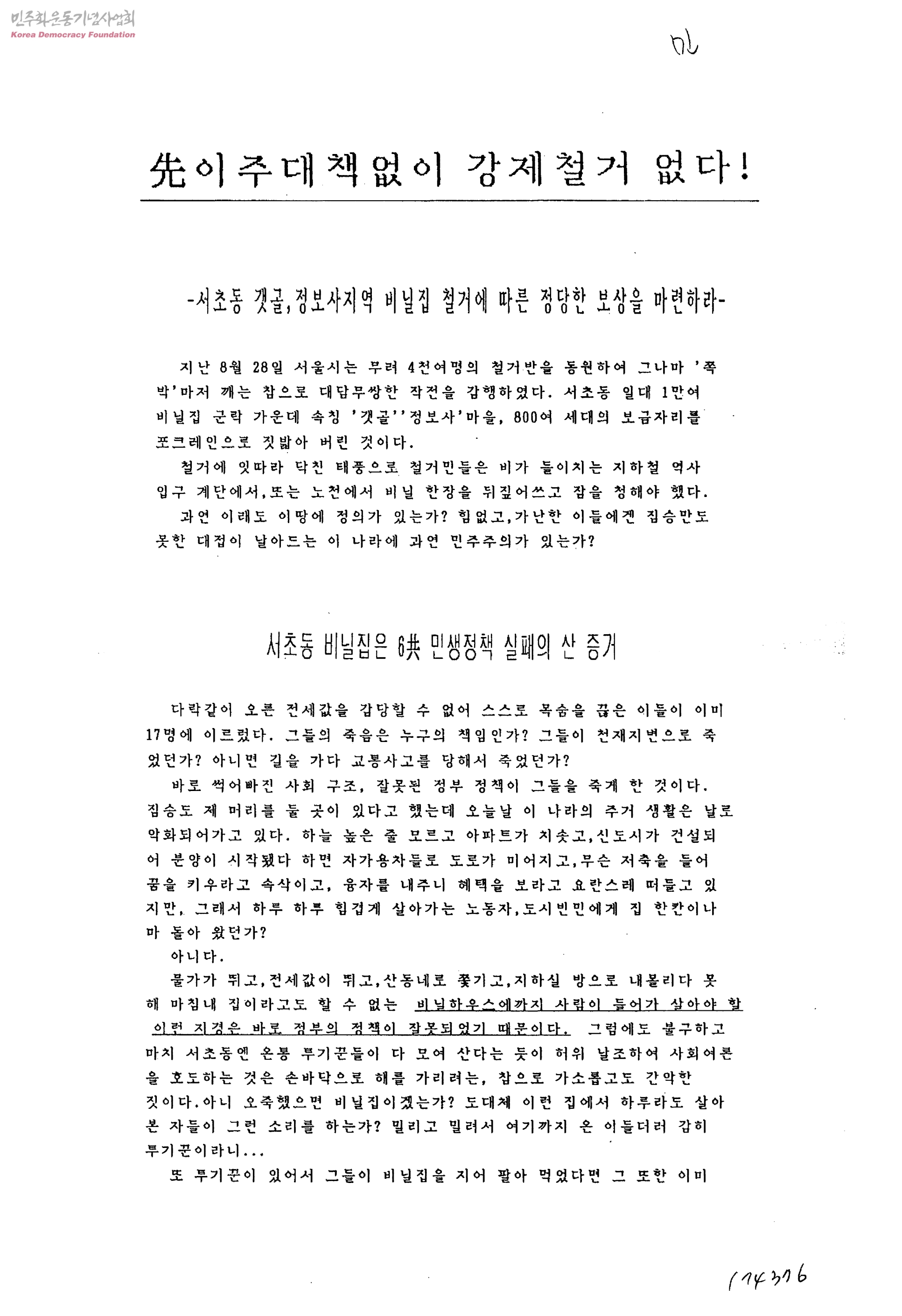 先이주대책없이강제철거없다