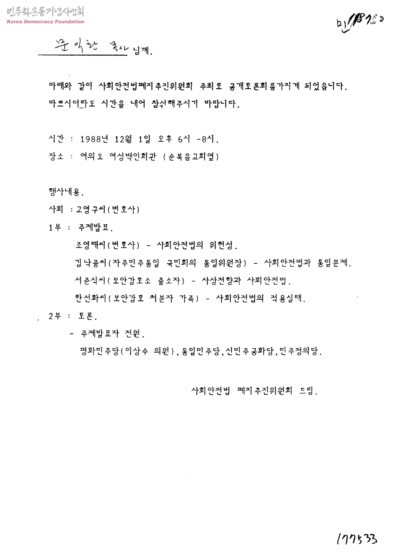 - 민주화운동자료관추진위원회
