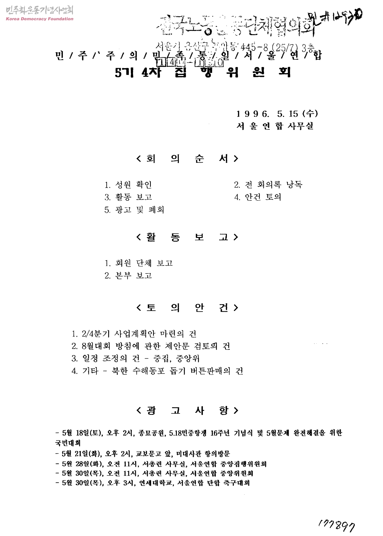 민주주의민족통일서울연합 5기 4차 집행위원회