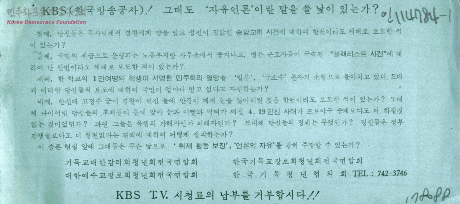 KBC(한국방송공사)! 그대도 '자유언론'이란 말을 쓸 낯이 있는가?