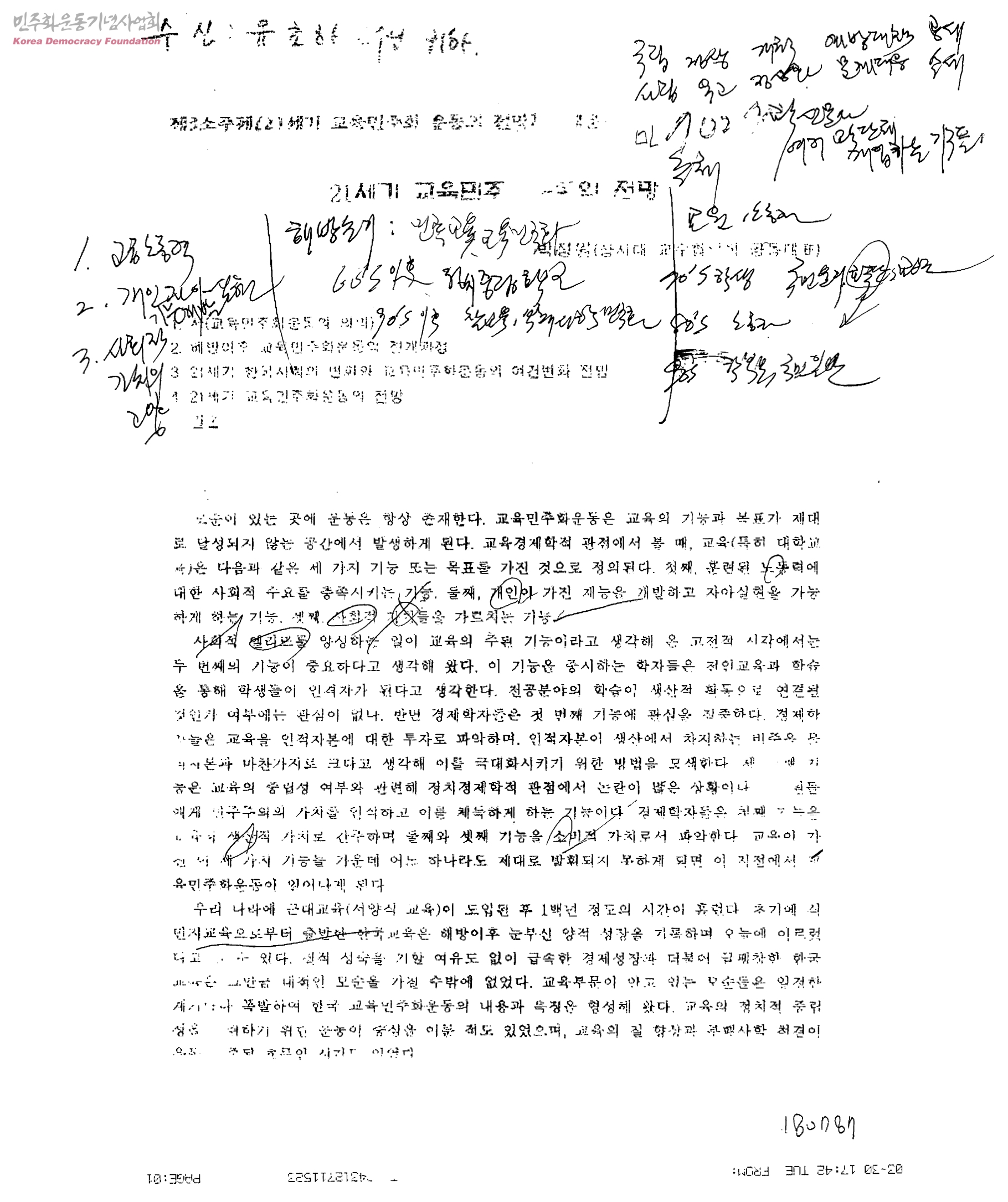 21세기 교육민주화운동의 전망[수신:유초하교수님, 발신:박정원]