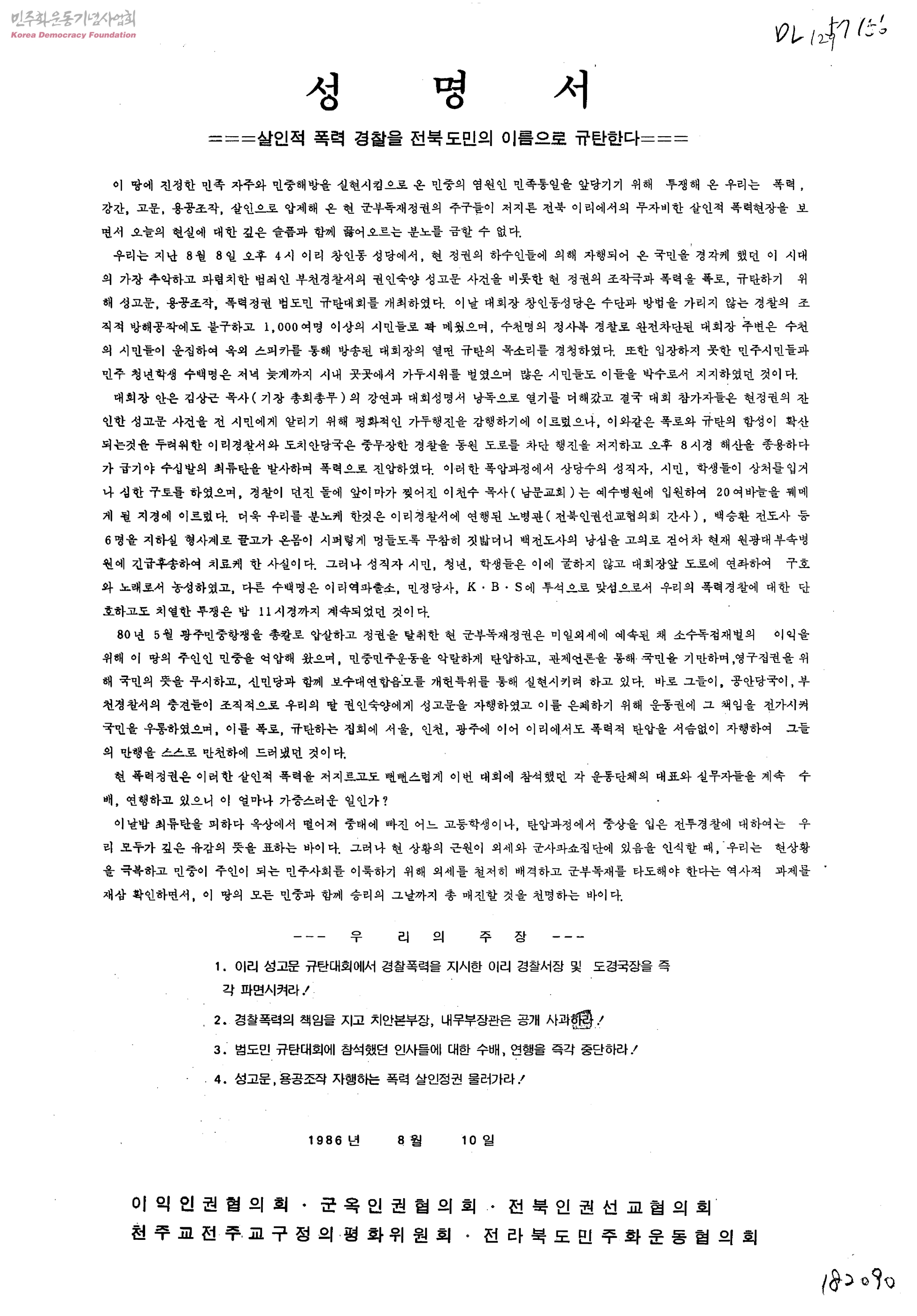 성명서-살인적 폭력 경찰을 전북도민의 이름으로 규탄한다