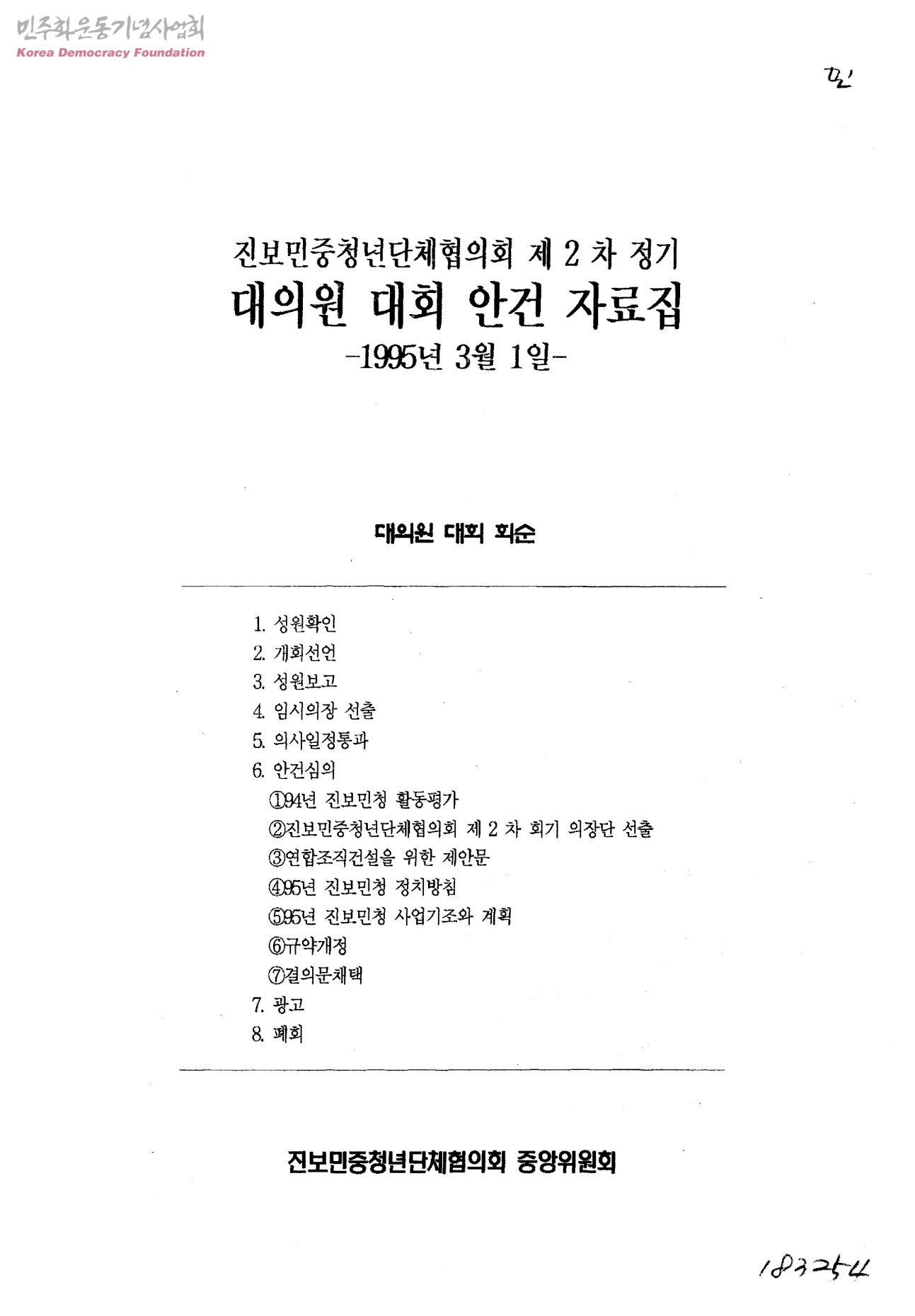 진보민중청년단체협의회 제2차 정기 대의원 대회 안건 자료집