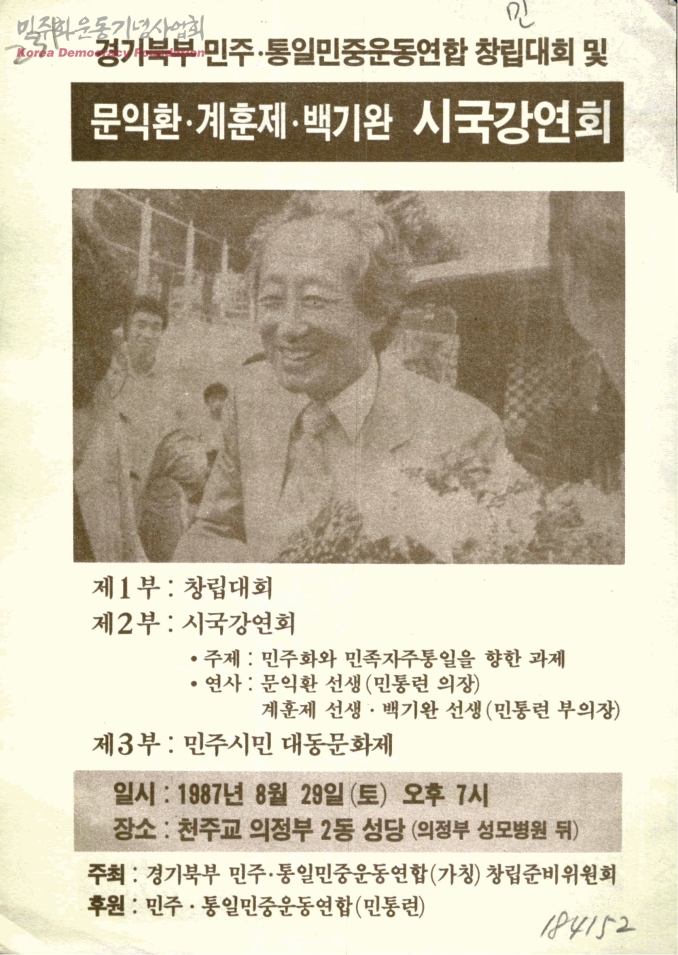 경기북부민주·통일민중운동연합 창립대회 및 문익환·계훈제·백기완 시국강연회