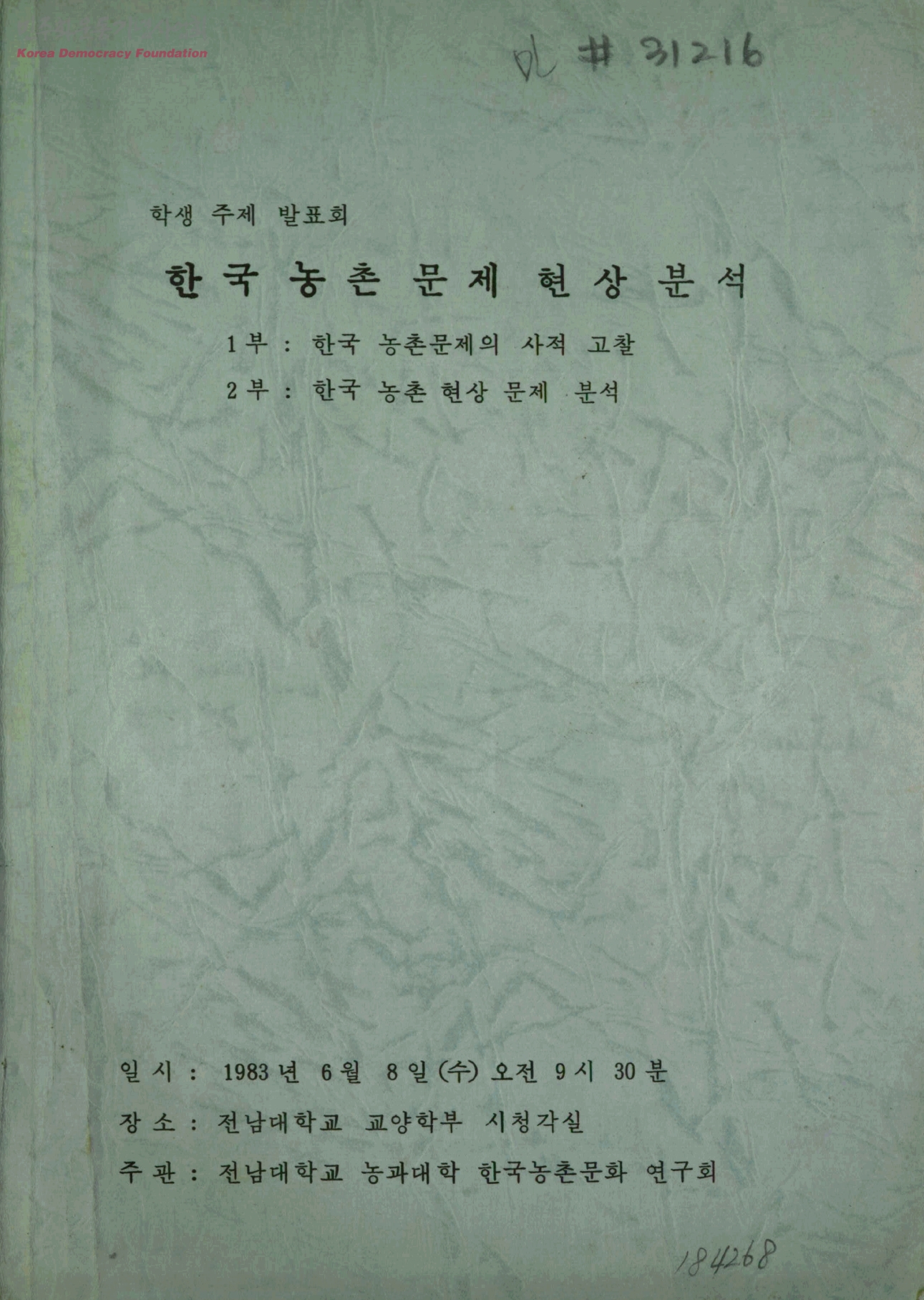 한국 농촌 문제 현상 분석-1부:한국 농촌문제의 사적 고찰-2부:한국 농촌 현상 문제 분석