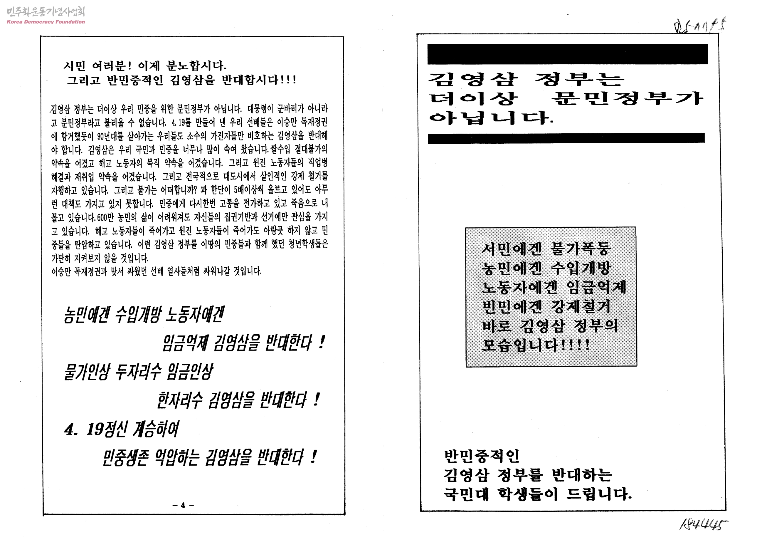 - 반민중적인김영삼정부를반대하는국민대학교학생들