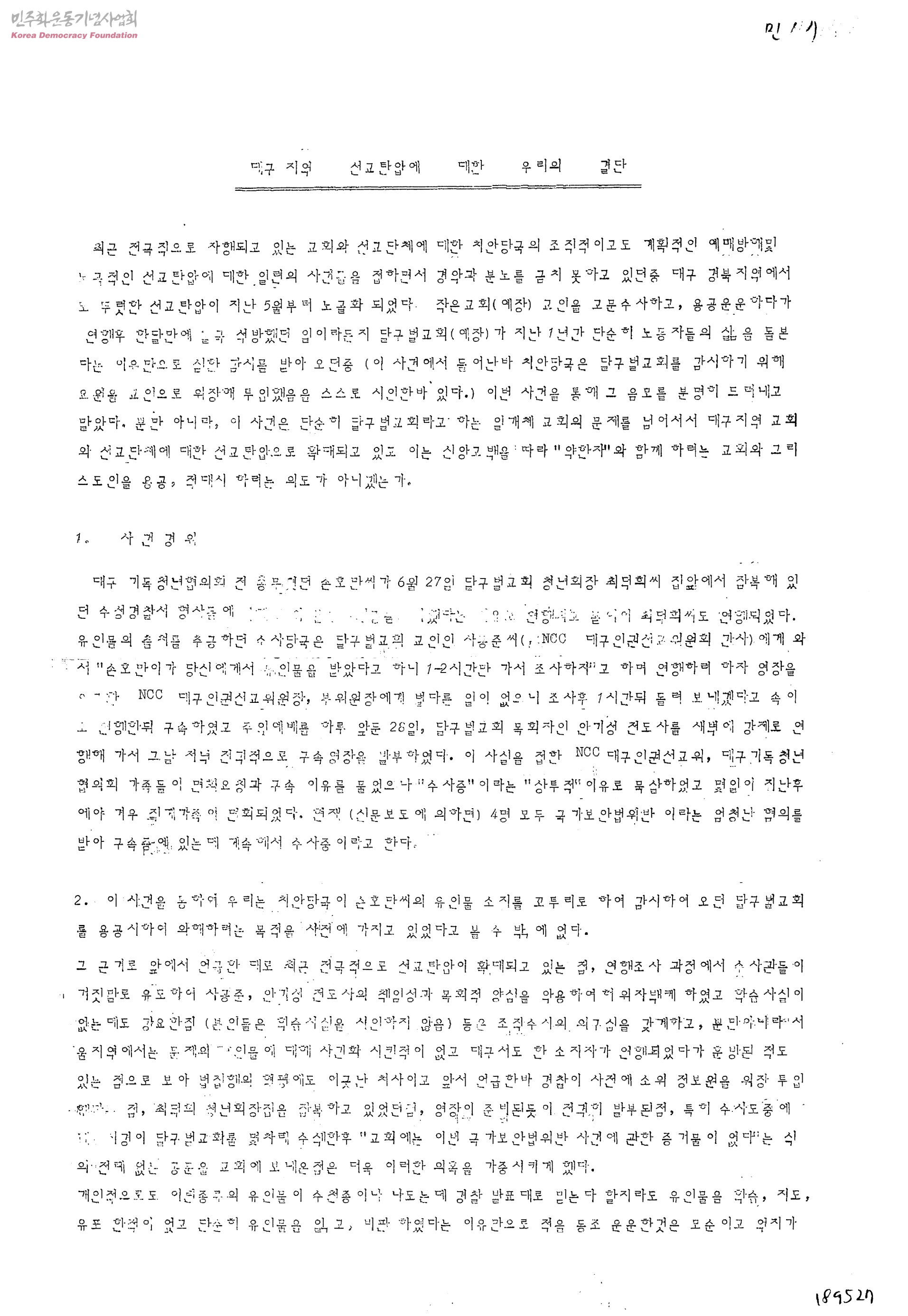- 한국기독교교회협의회대구인권선교위원회, 대구.경북지역목회자정의.평화실천협의회, 대구지구기독청년협의회, 경북기독농민회