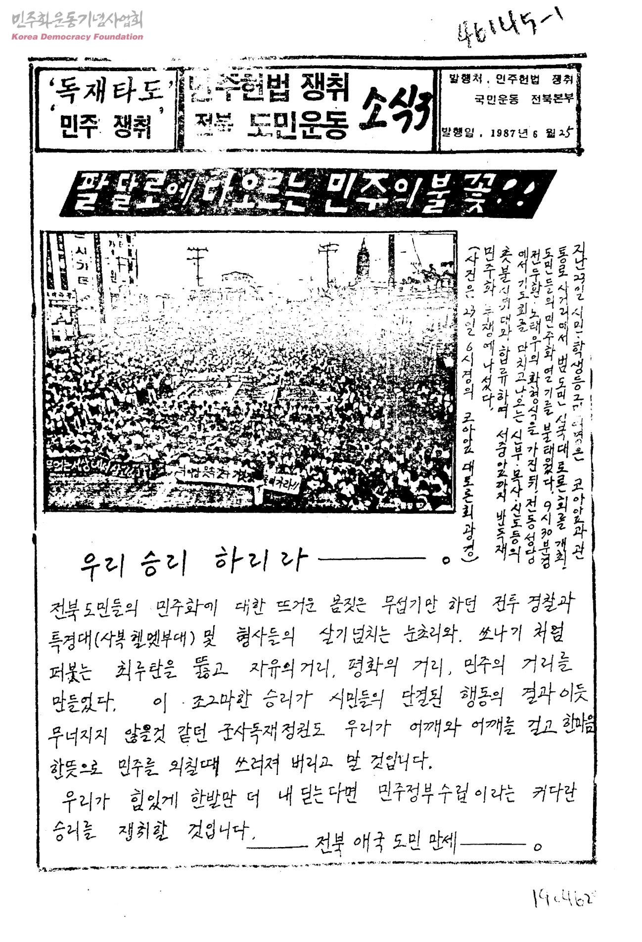 민주헌법 쟁취 전북 도민운동 소식3