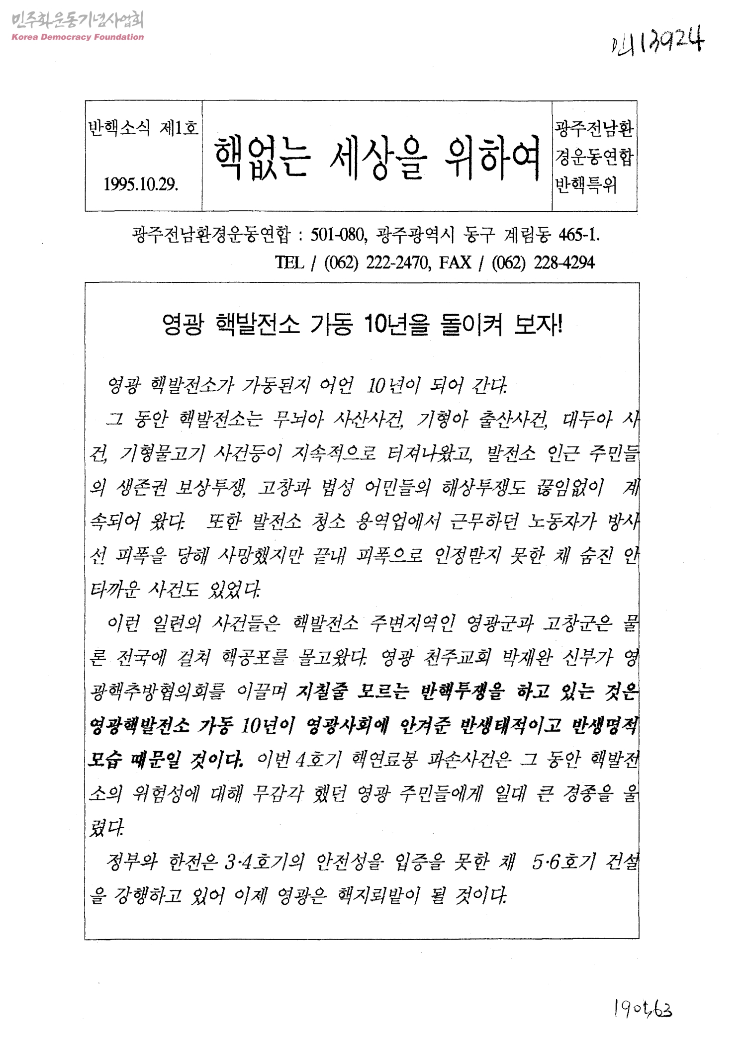 반핵소식 제1호-핵 없는 세상을 위하여