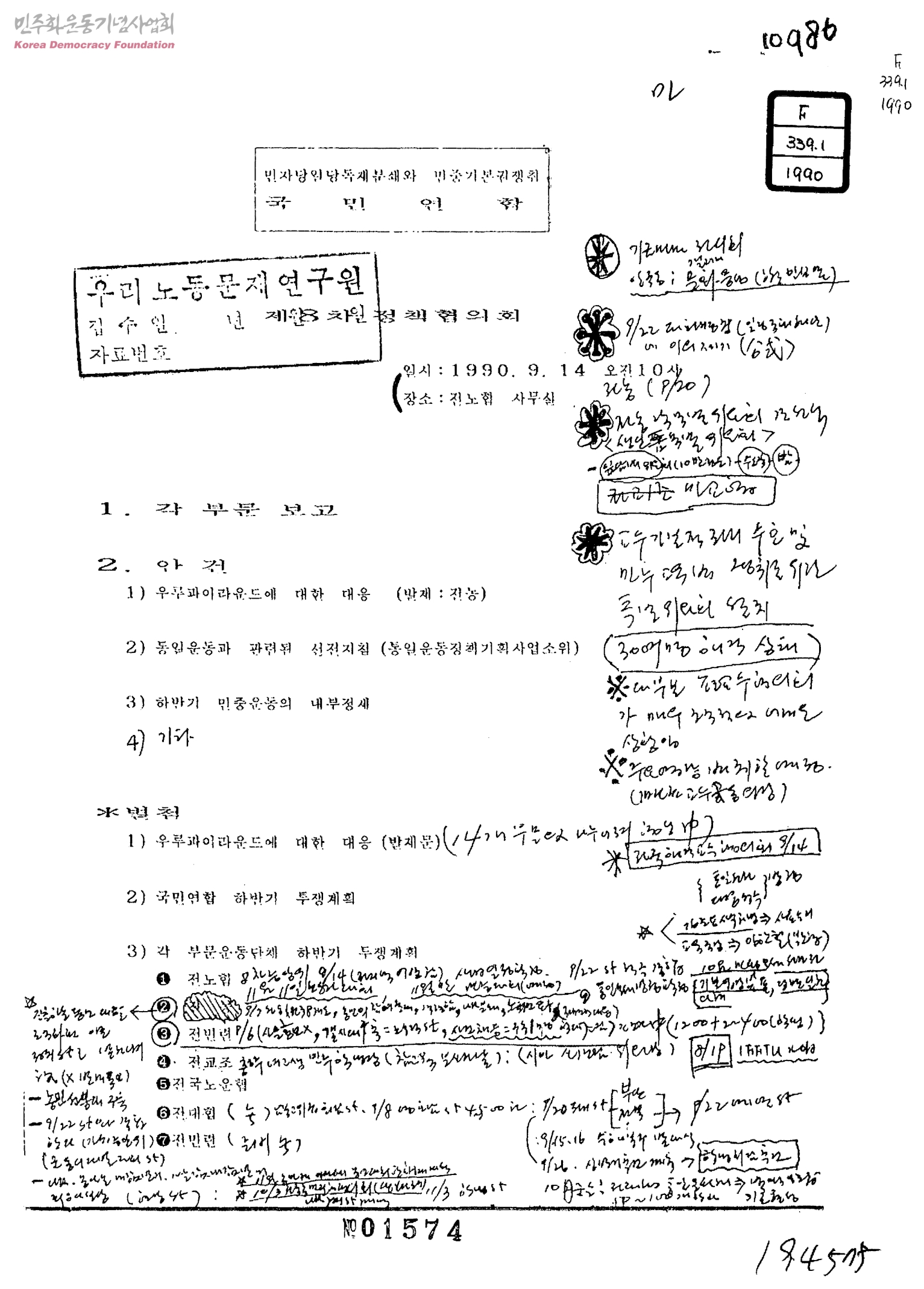 - 민자당일당독재분쇄와민중기존권쟁취국민연합