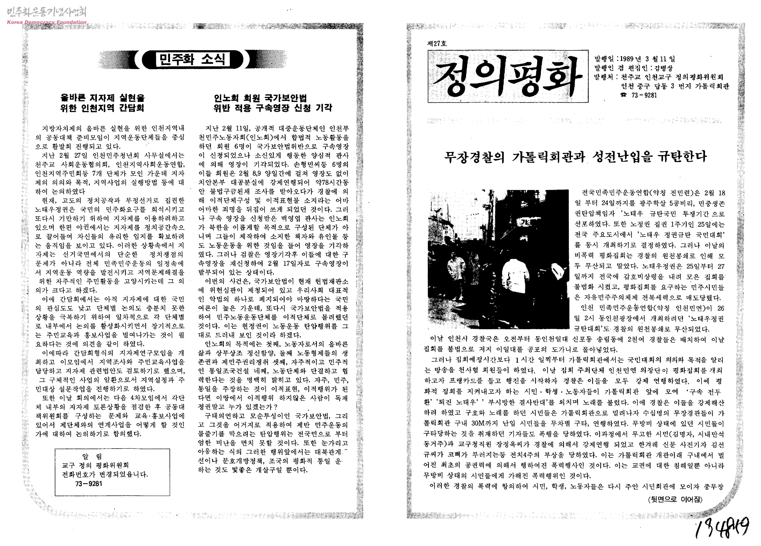 - 1.무장경찰의 가톨릭회관과 성전난입을 규탄한다 2.현장소식-현대중공업 폭력테러 3.사설-중간평가(?) 4.민주화소식