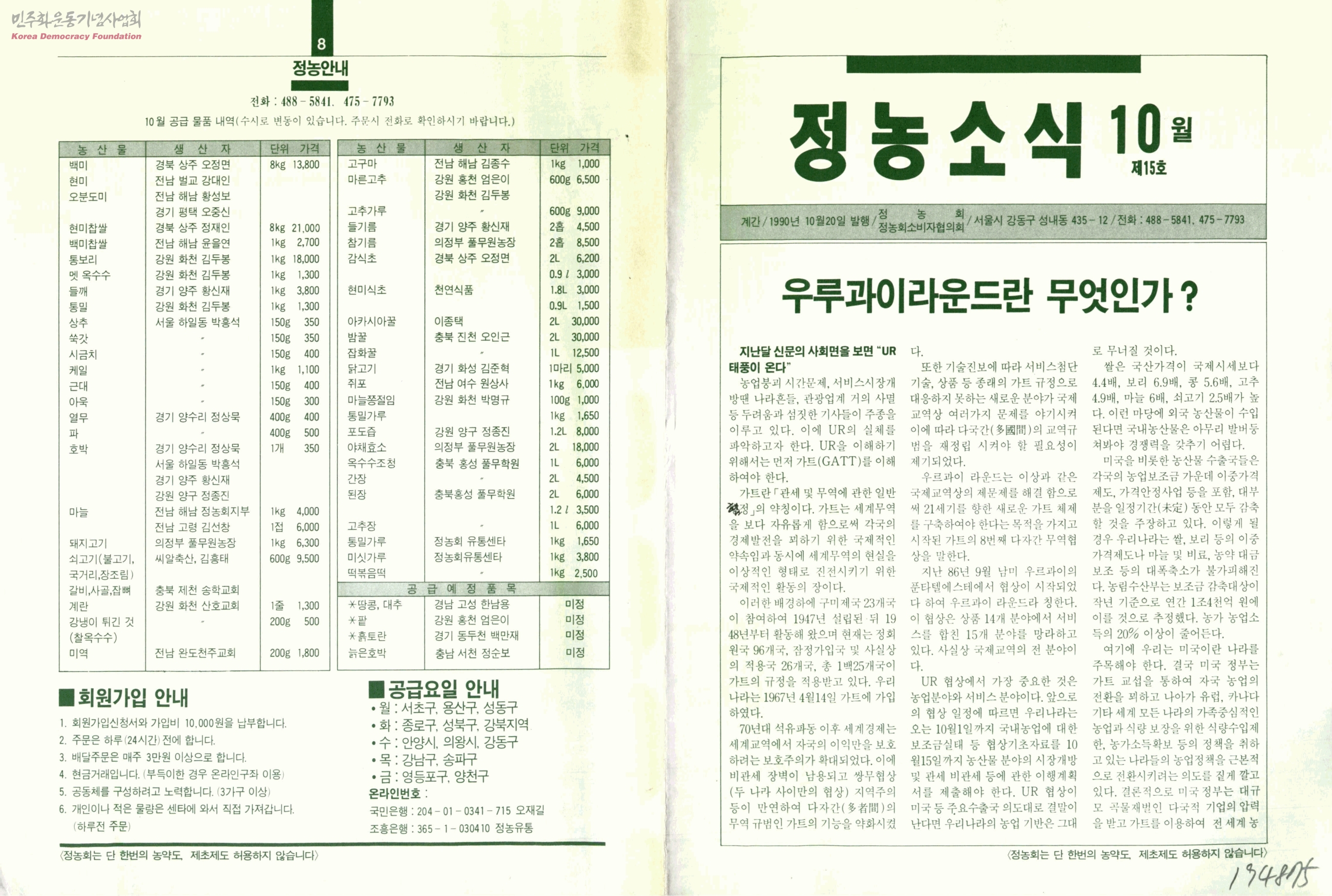 - 1.우루과이라운드란 무엇인가? 2.생산자-싸리골을 지키며 3.소비자-그래 농약치지 말자 4.현장의 소리-UR협상, 농촌의 위기는 국민전체의 위기 5.정농의 소리-여름 모임을 마치며 6.정농안내-정부의 수돗물 대책에 대한 우리의 입장