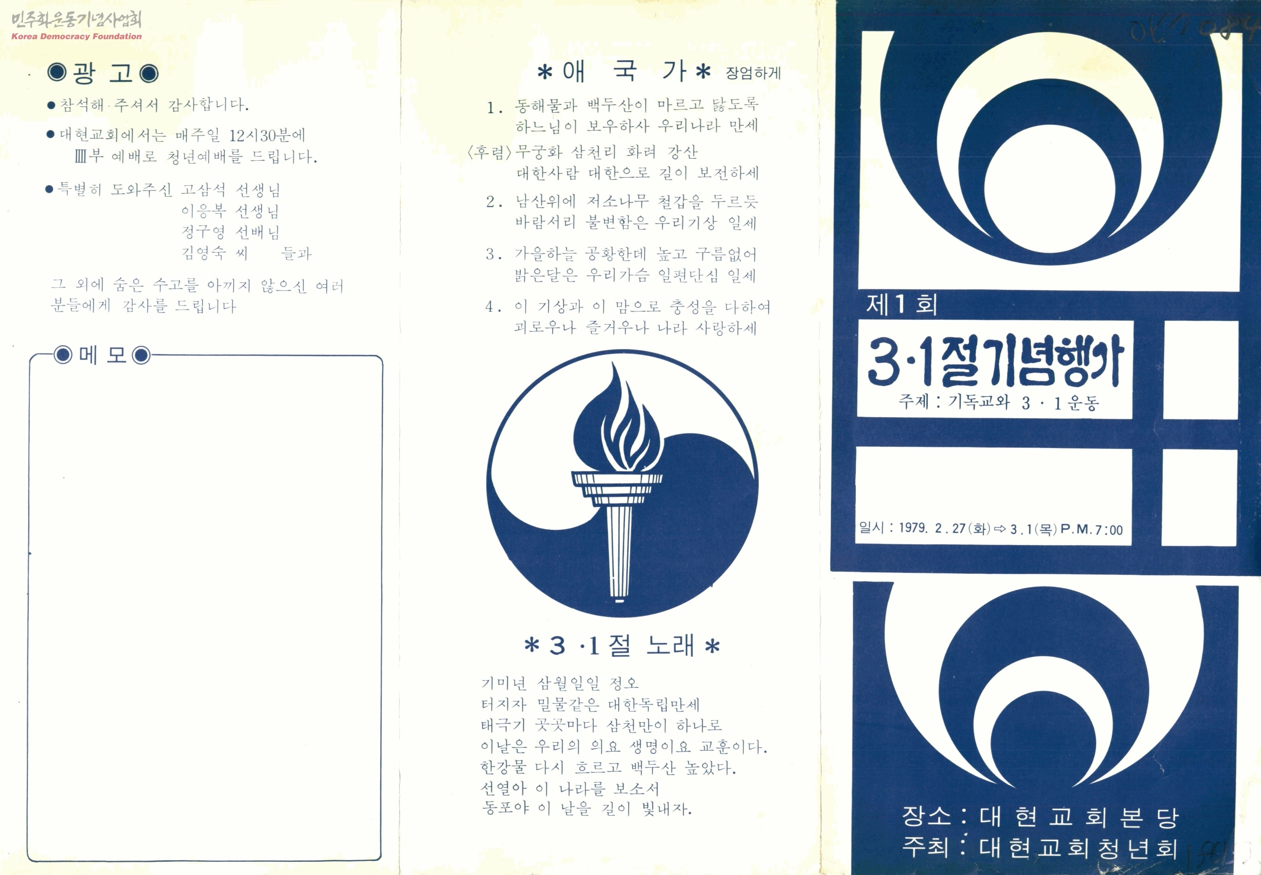 제1회 3ㆍ1절 기념행사-주제:기독교와 3ㆍ1운동