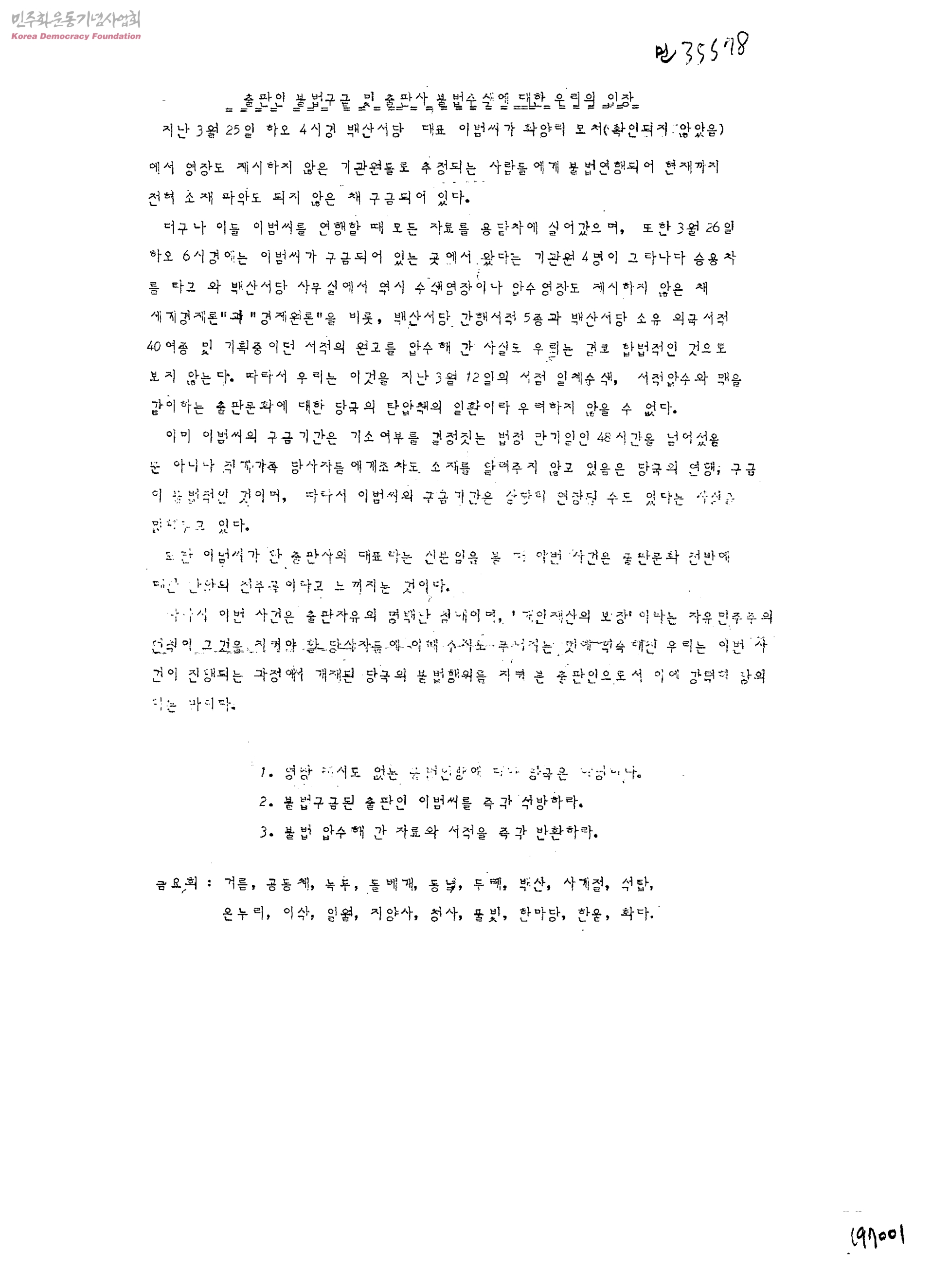 출판인 불법구금 및 출판사 불법수색에 대한 우리의 입장