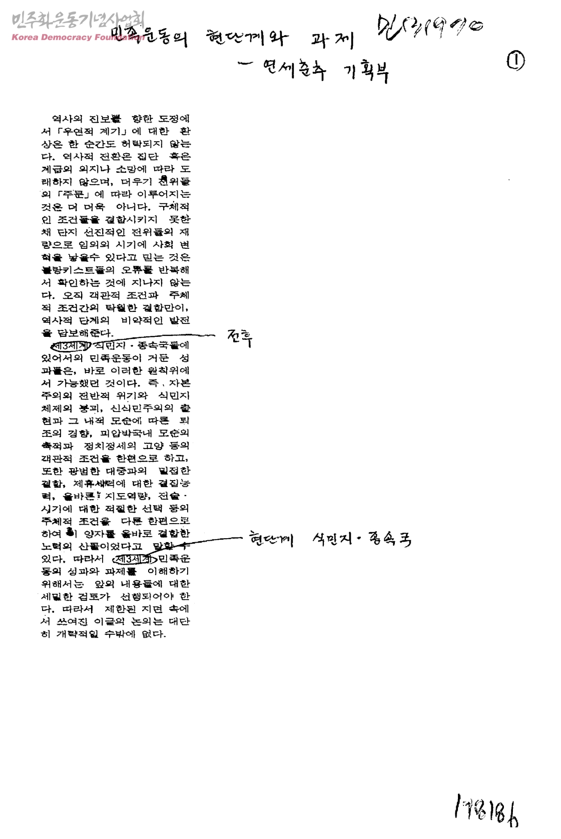 민족운동의 현단계와 과제