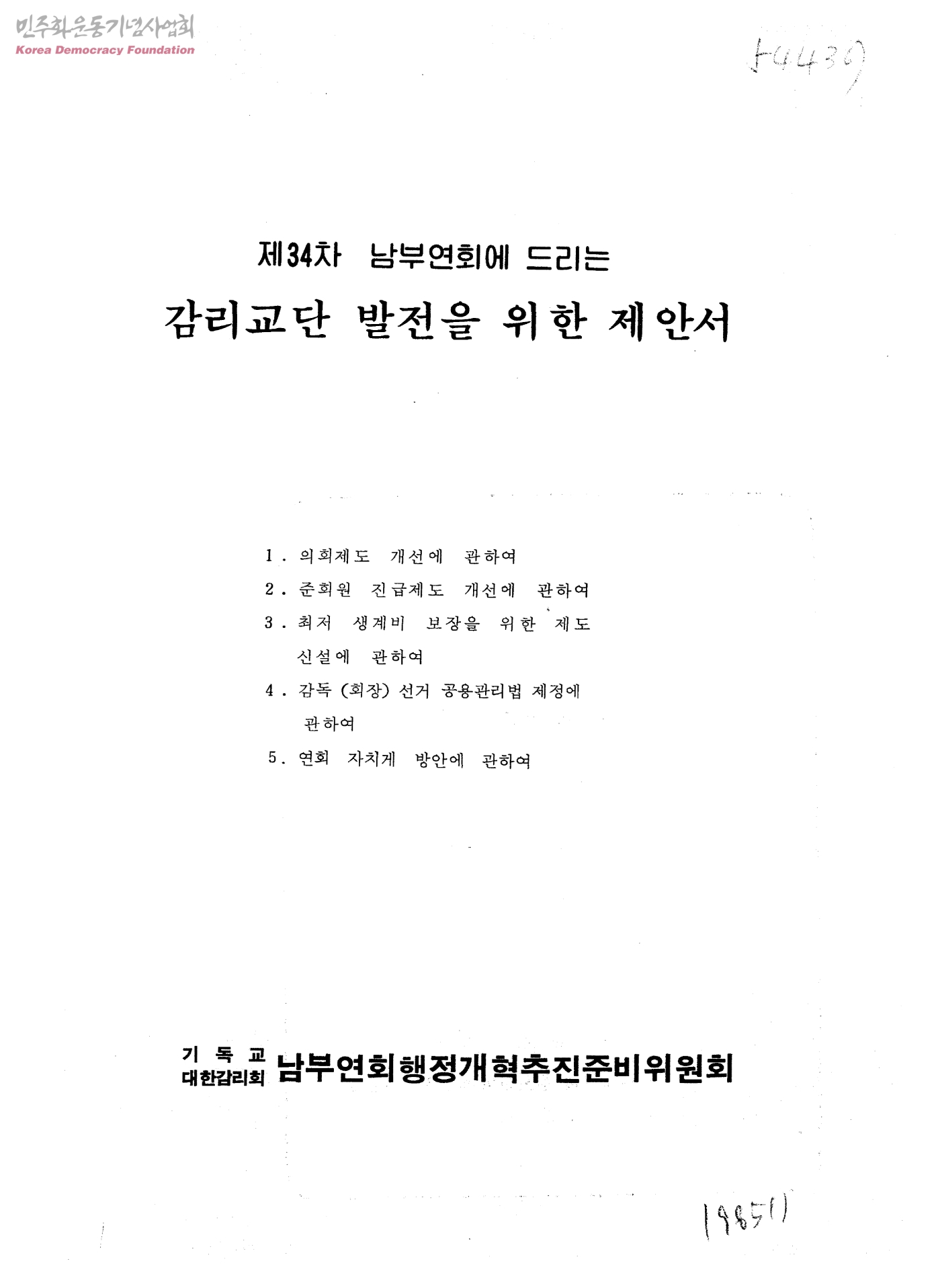 제34차 남부연회에 드리는 감리교단 발전을 위한 제안서