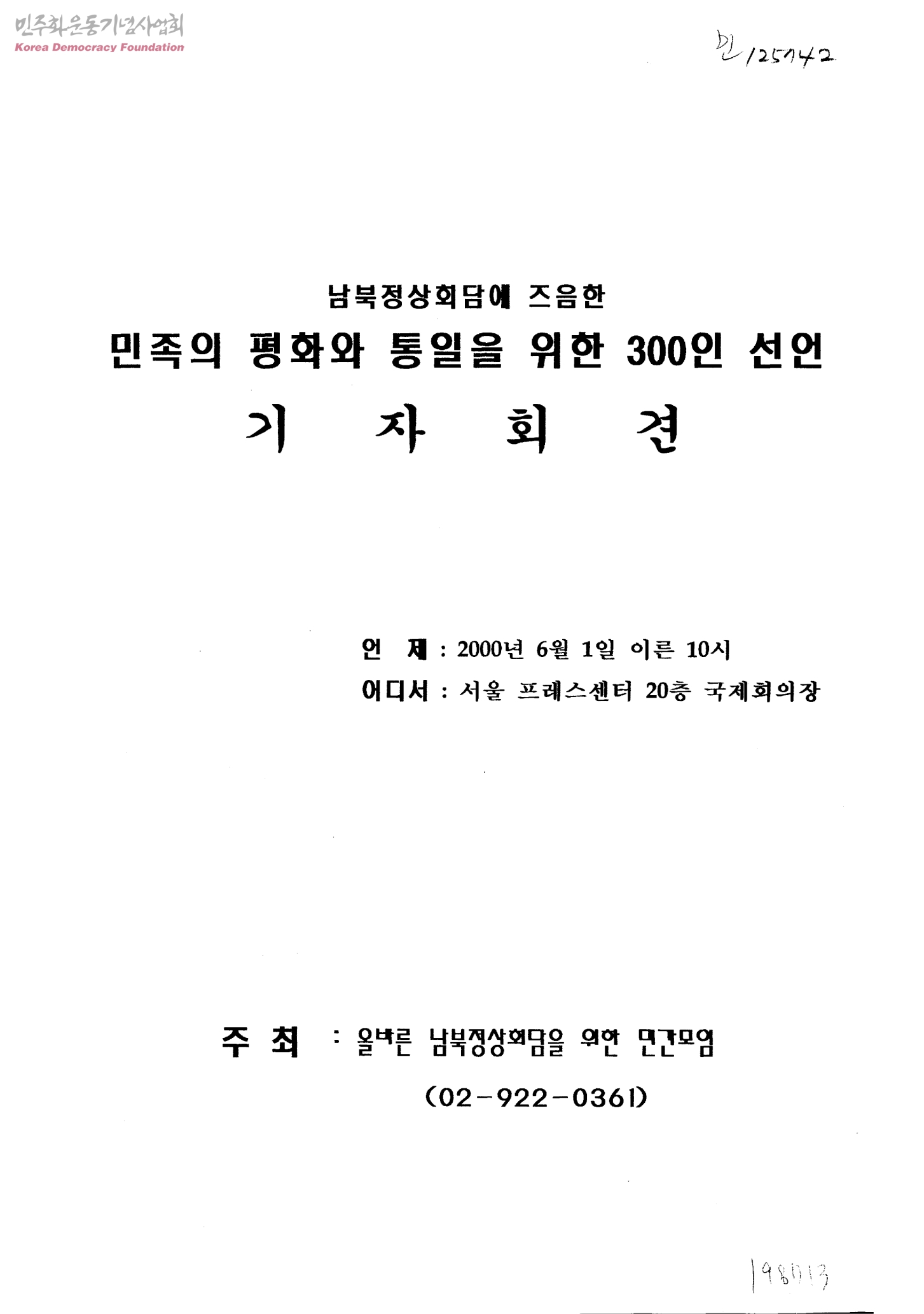 기자회견 - 남북정상회담에 즈음한 민족의 평화와 통일을 위한 300인 선언