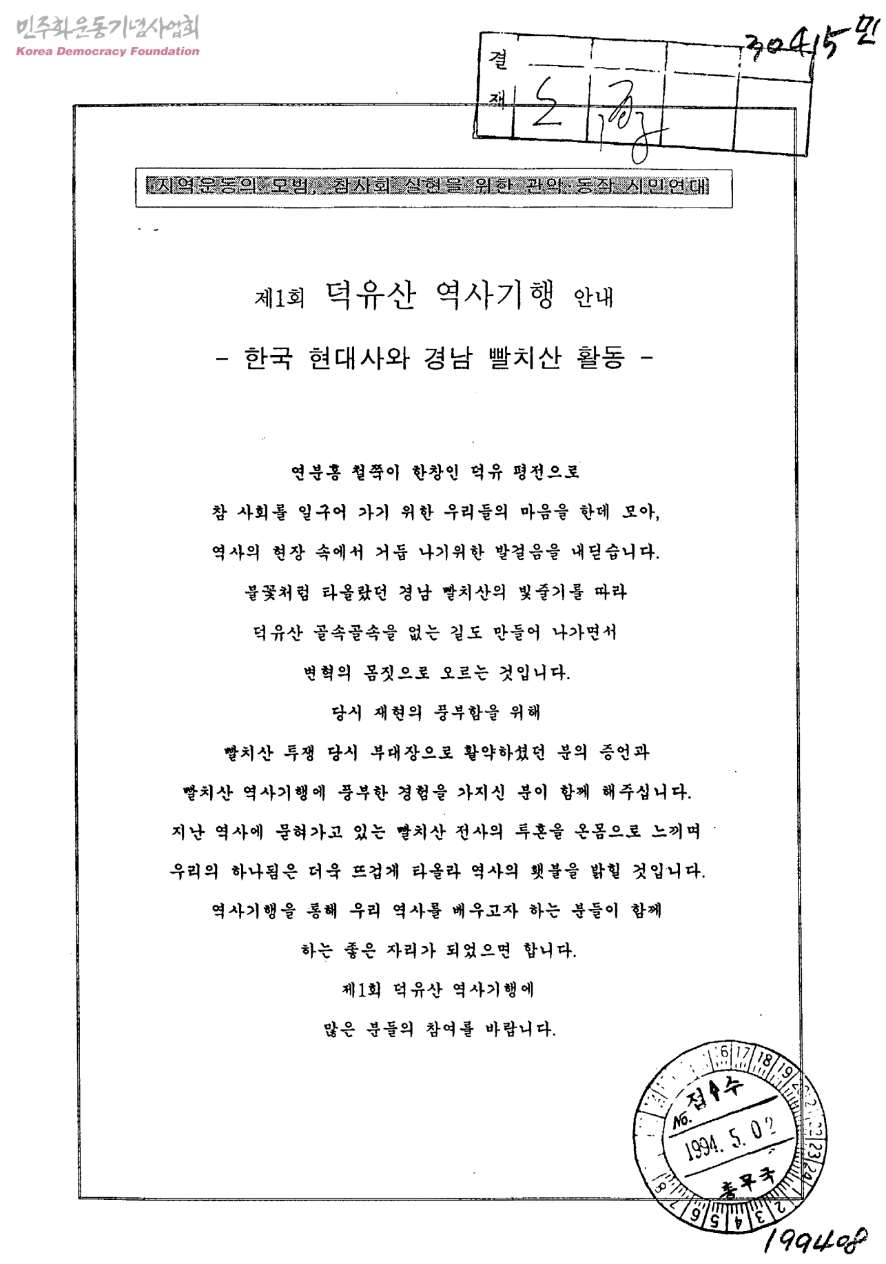 제1회 덕유산 역사기행 안내-한국 현대사와 경남 빨치산 활동