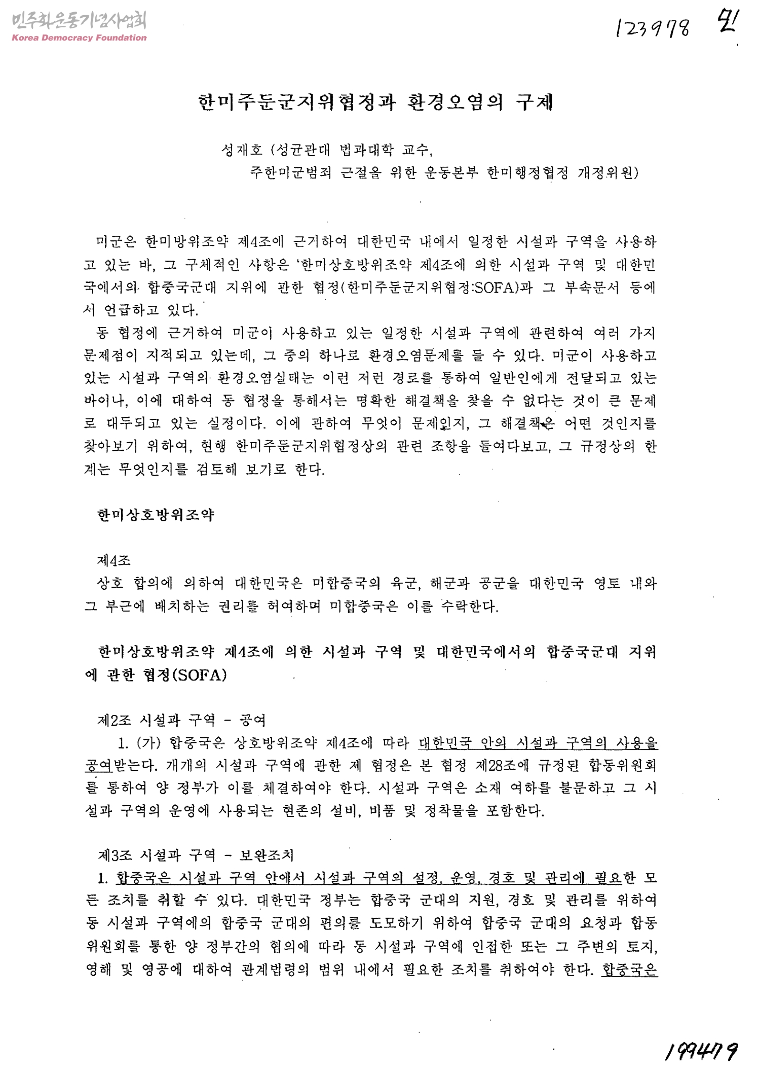 - 성재호(성균관대법과대학교수, 주한미군범죄근절을위한운동본부한미행정협정개정위원)