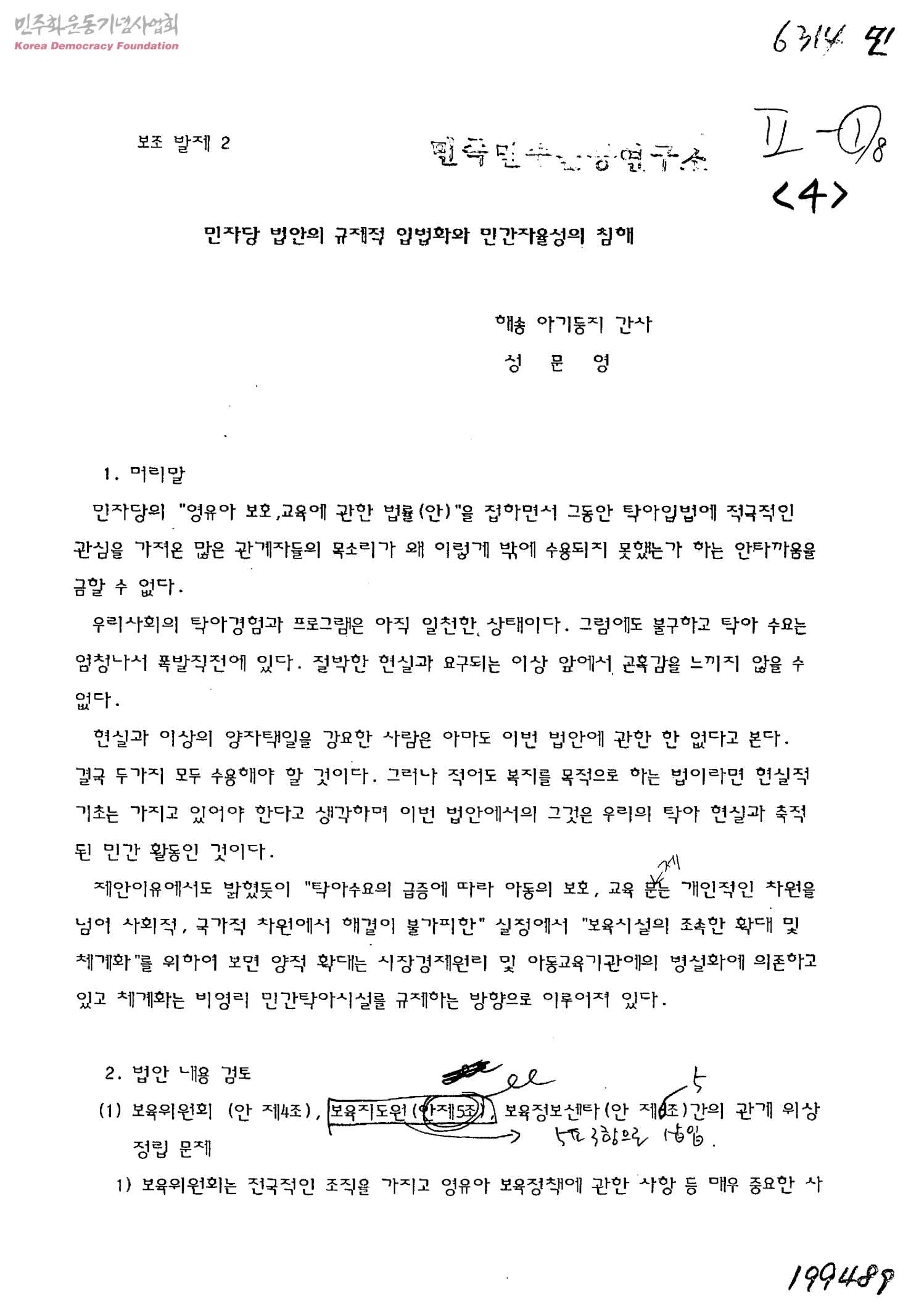 민자당 법안의 규제적 입법화와 민간자율성의 침해