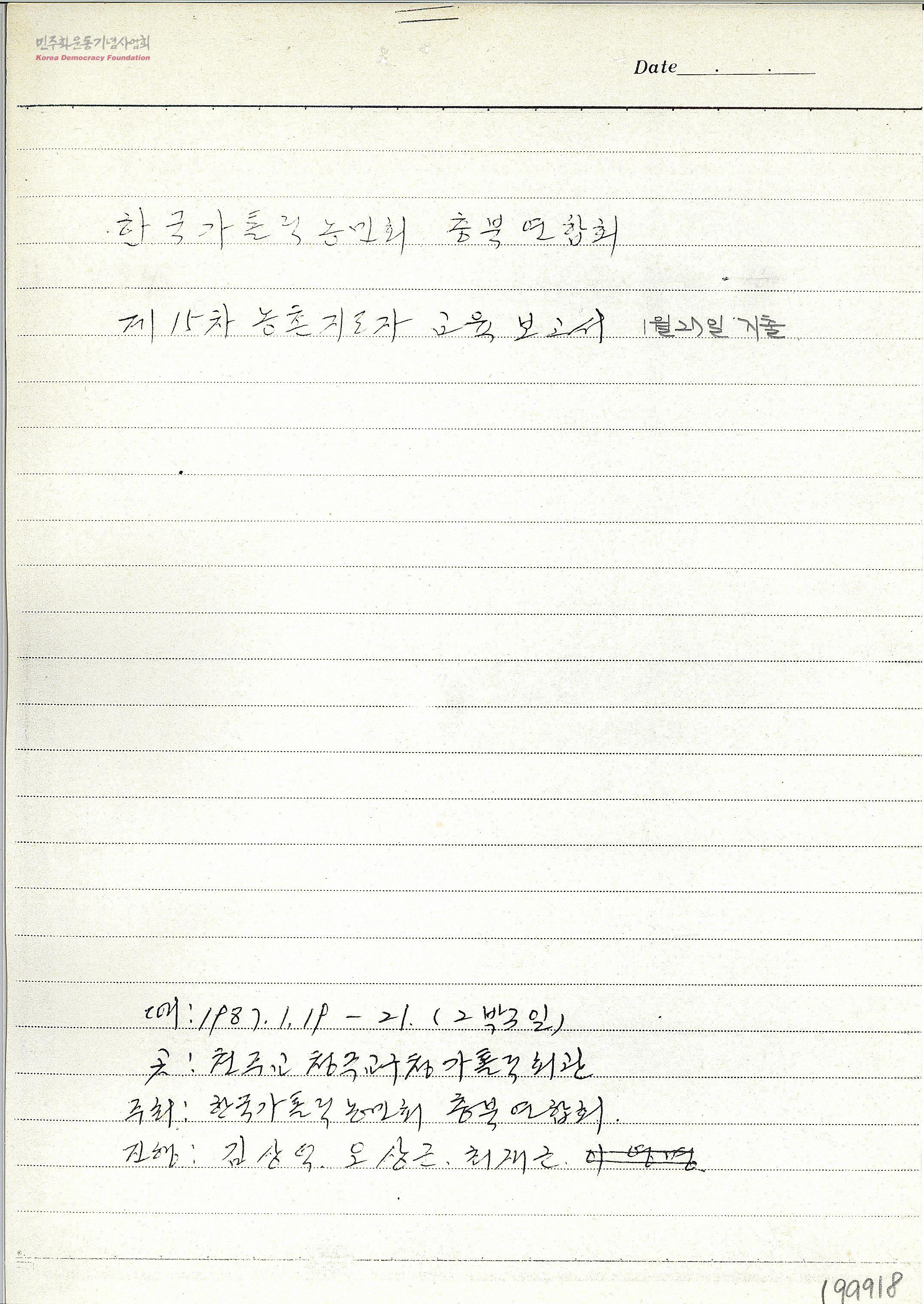 한국가톨릭농민회 충북연합회 제15차 농촌지도자 교육보고서