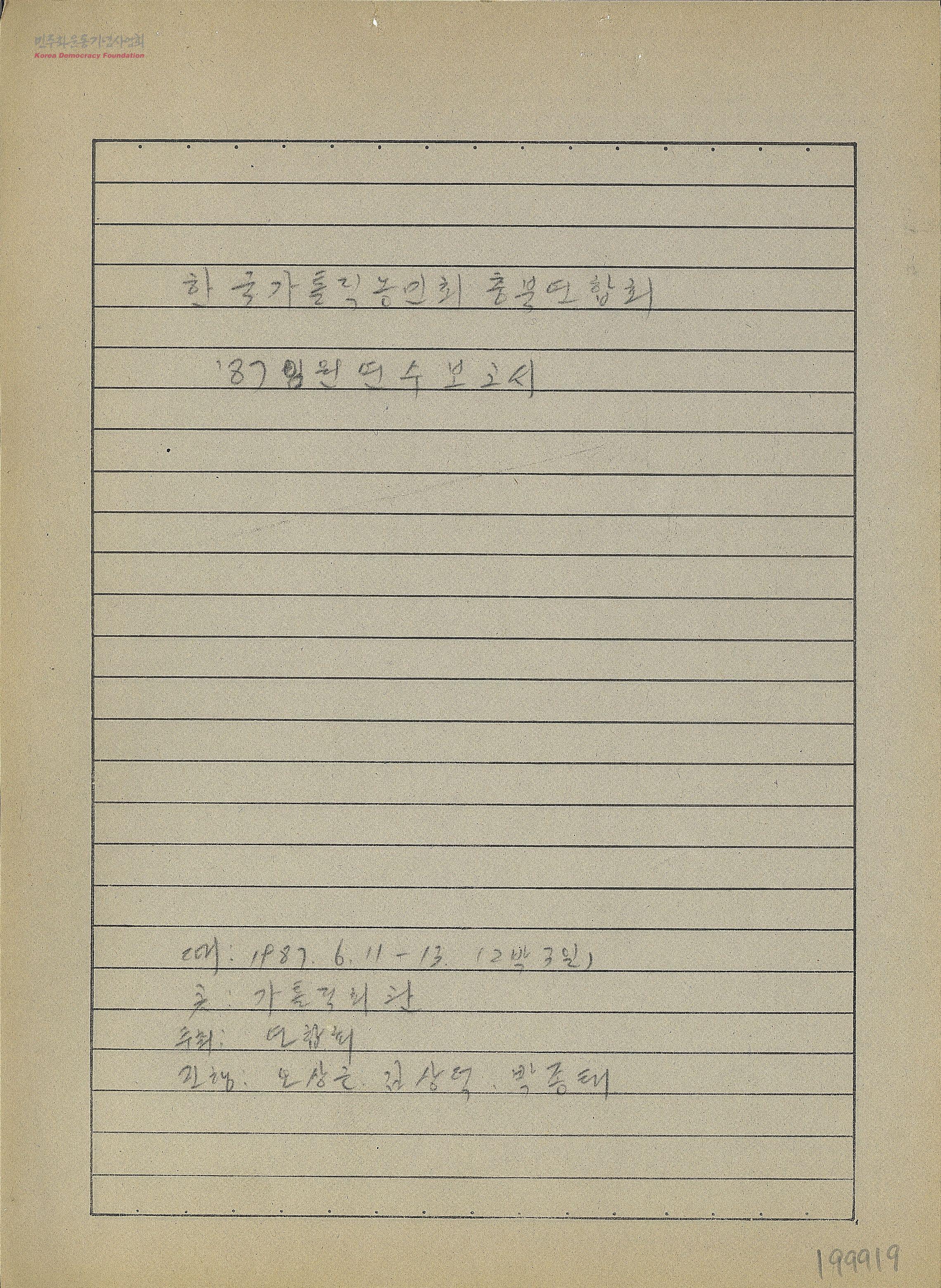 한국가톨릭농민회 충북연합회 '87임원연수보고서