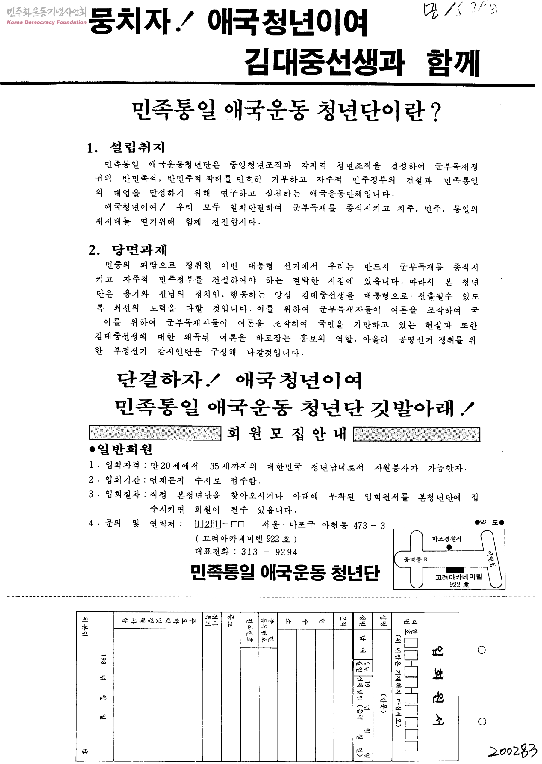 뭉치자 애국청년이여 김대중선생과 함께-민족통일 애국운동 청년단이란