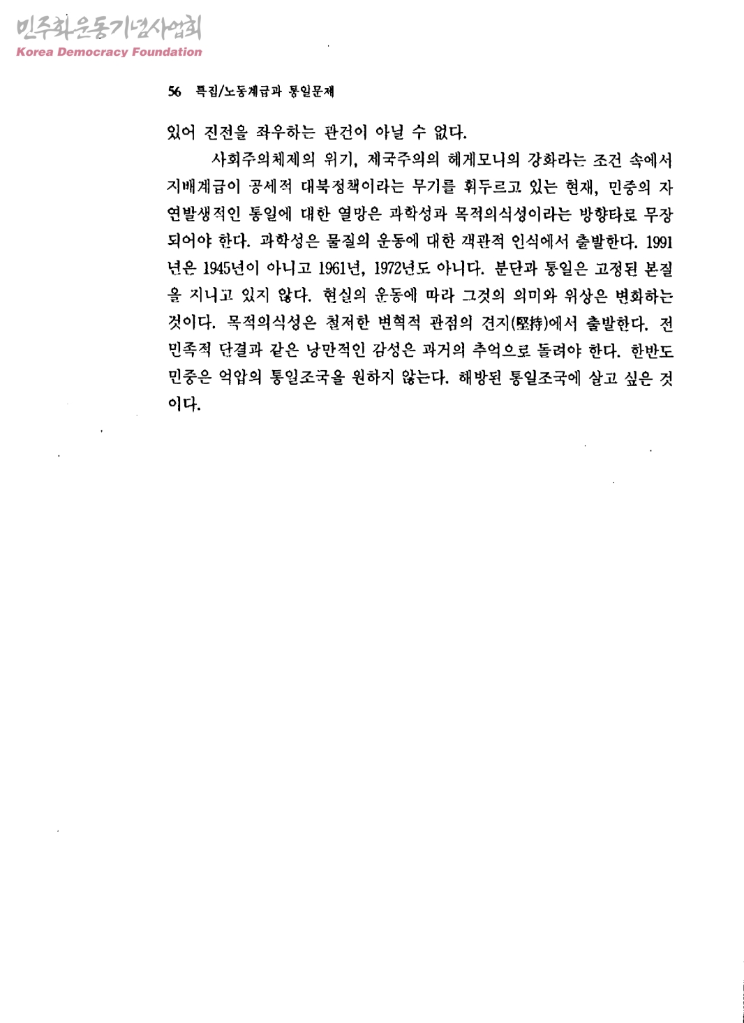 노동계급과 통일문제-90년대 한국노동자들의 통일의식