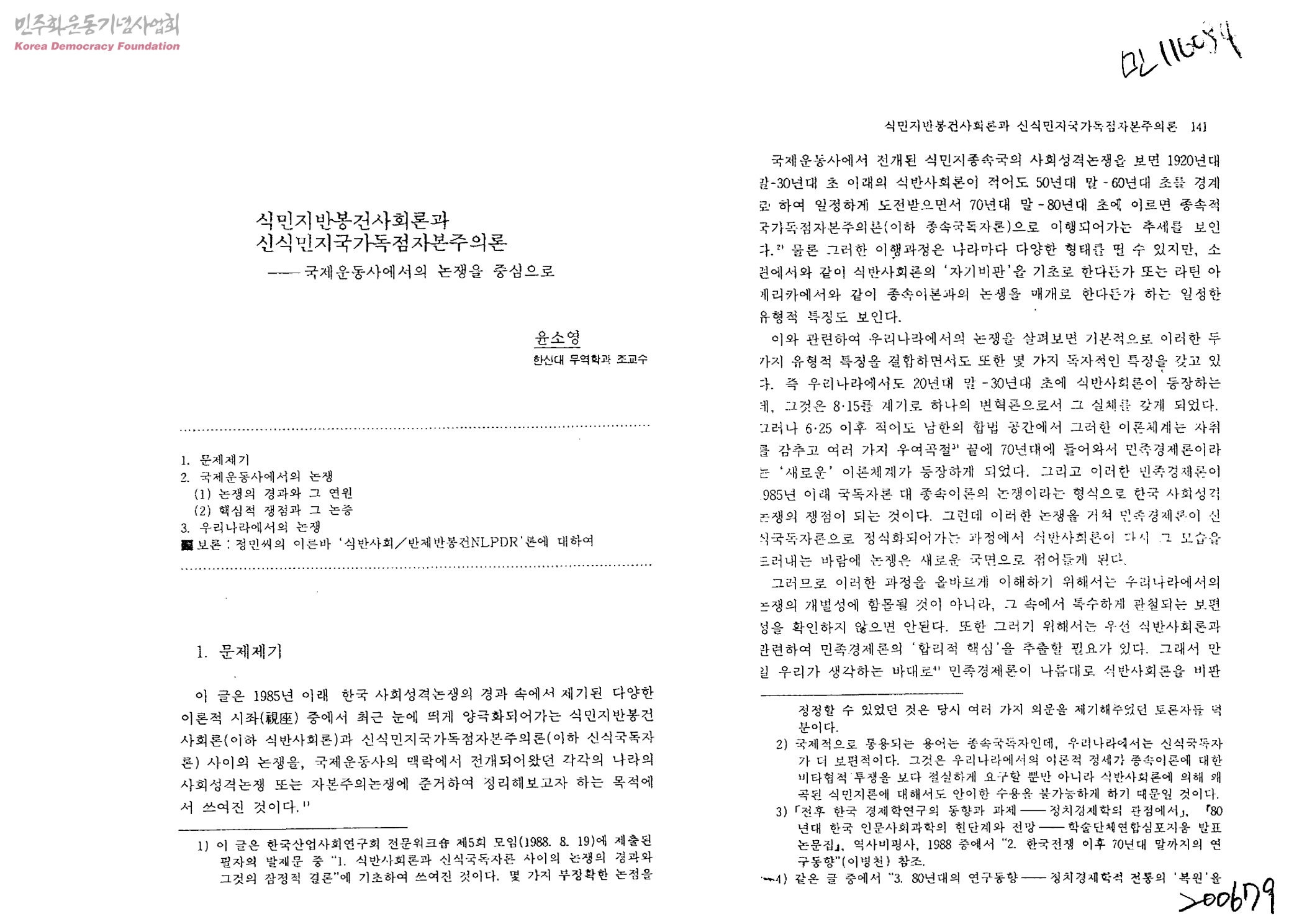 식민지반봉건사회론과 신식민지국가독점자본주의론 -국제운동사에서의 논쟁을 중심으로-