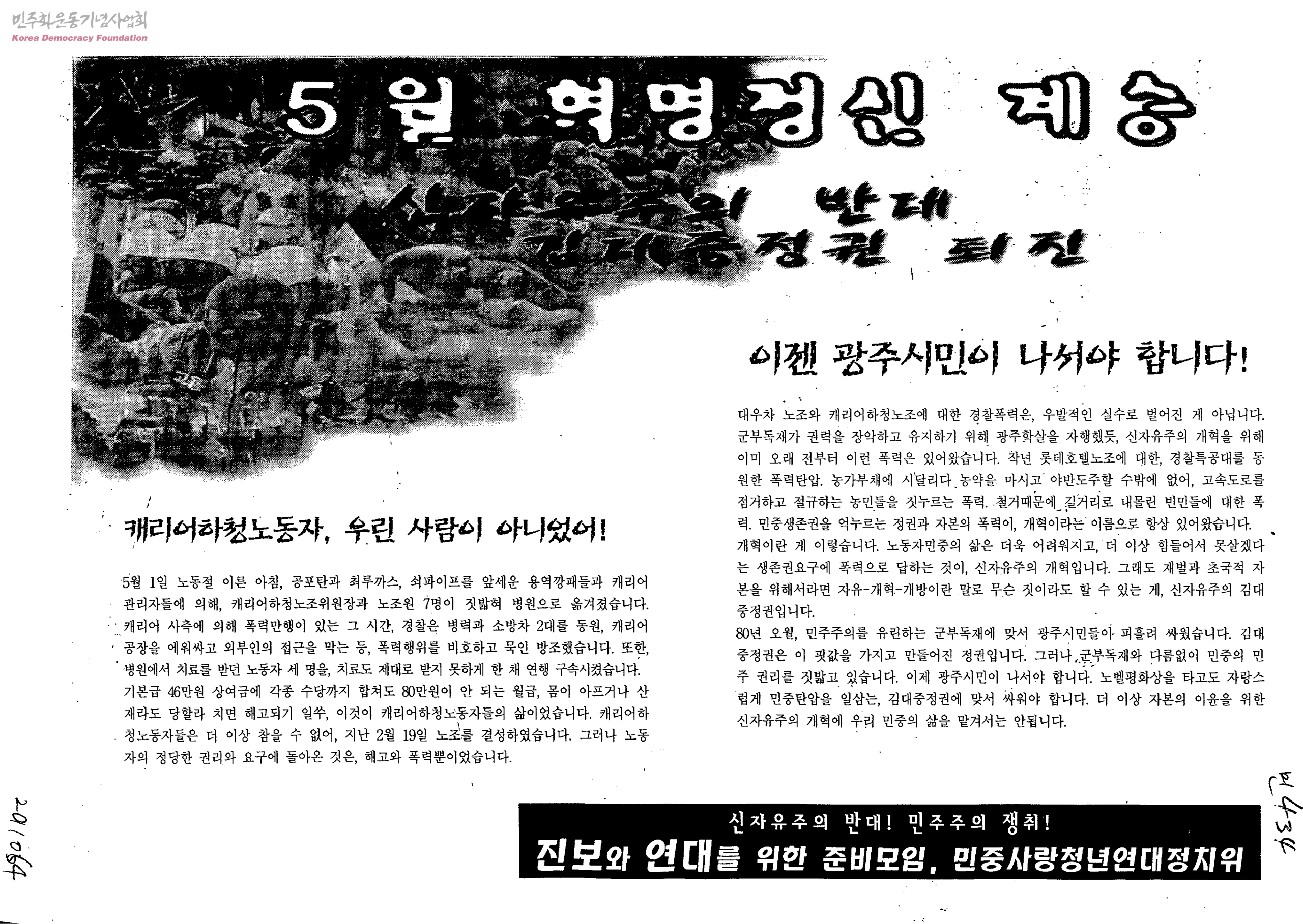 - 생산자 및 기증자가 ‘박용수’인 사진의 사용은 구매신청을 클릭하여 직접 사진 구매 신청을 하실 수 있습니다. 생산자 및 기증자가 ‘경향신문사’인 사진의 사용은 경향신문사 담당자(02-3701-1635)를 통해 구매하실 수 있습니다. 그 외의 생산자 및 기증자는 민주화운동기념사업회 사료관 담당자( hyunchaek@kdemo.or.kr / 02-6440-8961 )에 문의바랍니다.