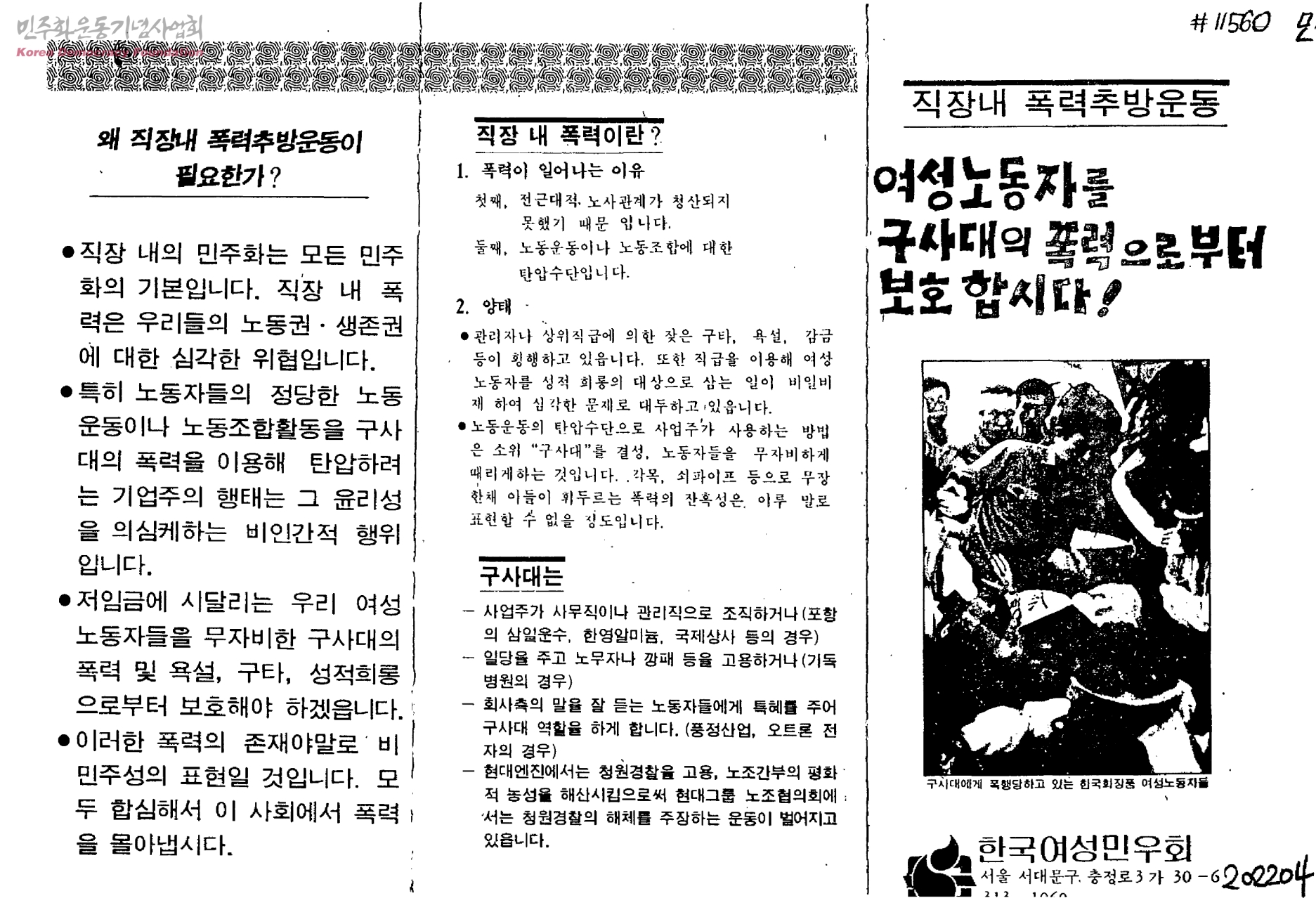 직장내 폭력추방운동-여성노동자를 구사대의 폭력으로부터 보호합시다