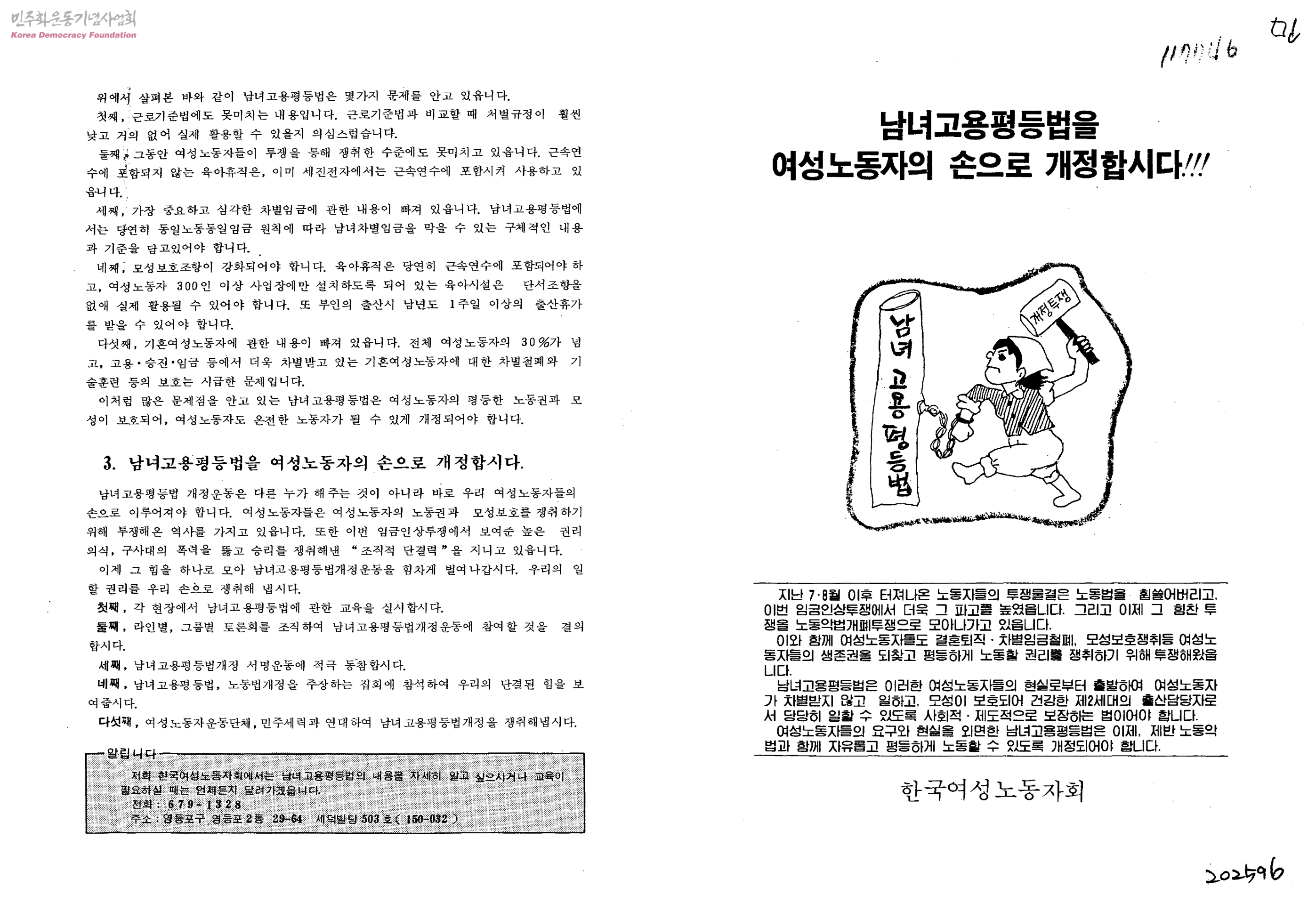 남녀고용평등법을 여성노동자의 손으로 개정합시다!!!