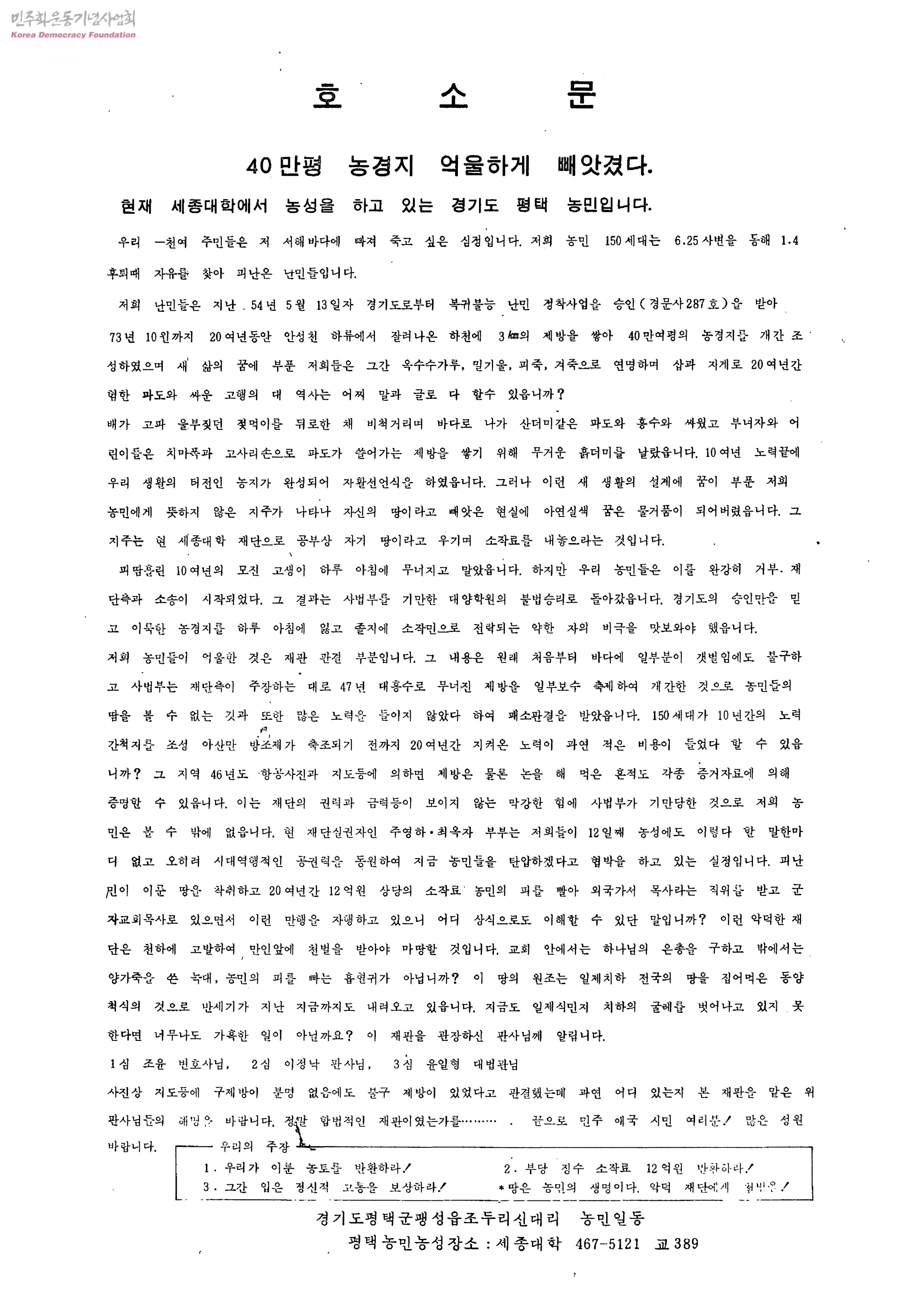 - 생산자 및 기증자가 ‘경향신문사’인 사진의 사용은 경향신문사 담당자(02-3701-1635)를 통해 구매하실 수 있습니다. 그 외의 생산자 및 기증자는 민주화운동기념사업회 사료관 담당자( hyunchaek@kdemo.or.kr / 02-6440-8961 )에게 문의바랍니다.