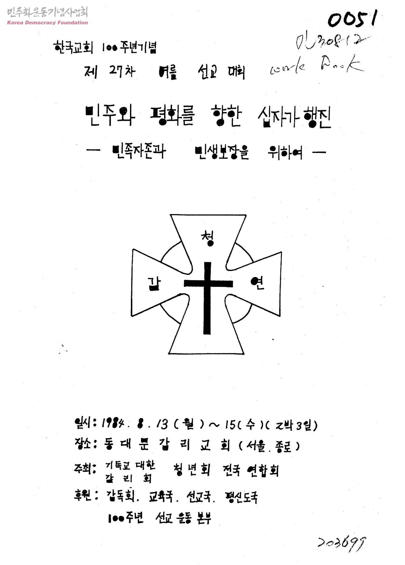 한국교회100주년기념 제27차 여름 선교대회-민주와 평화를 향한 십자가 행진-민족자존과 민생보장을 위하여