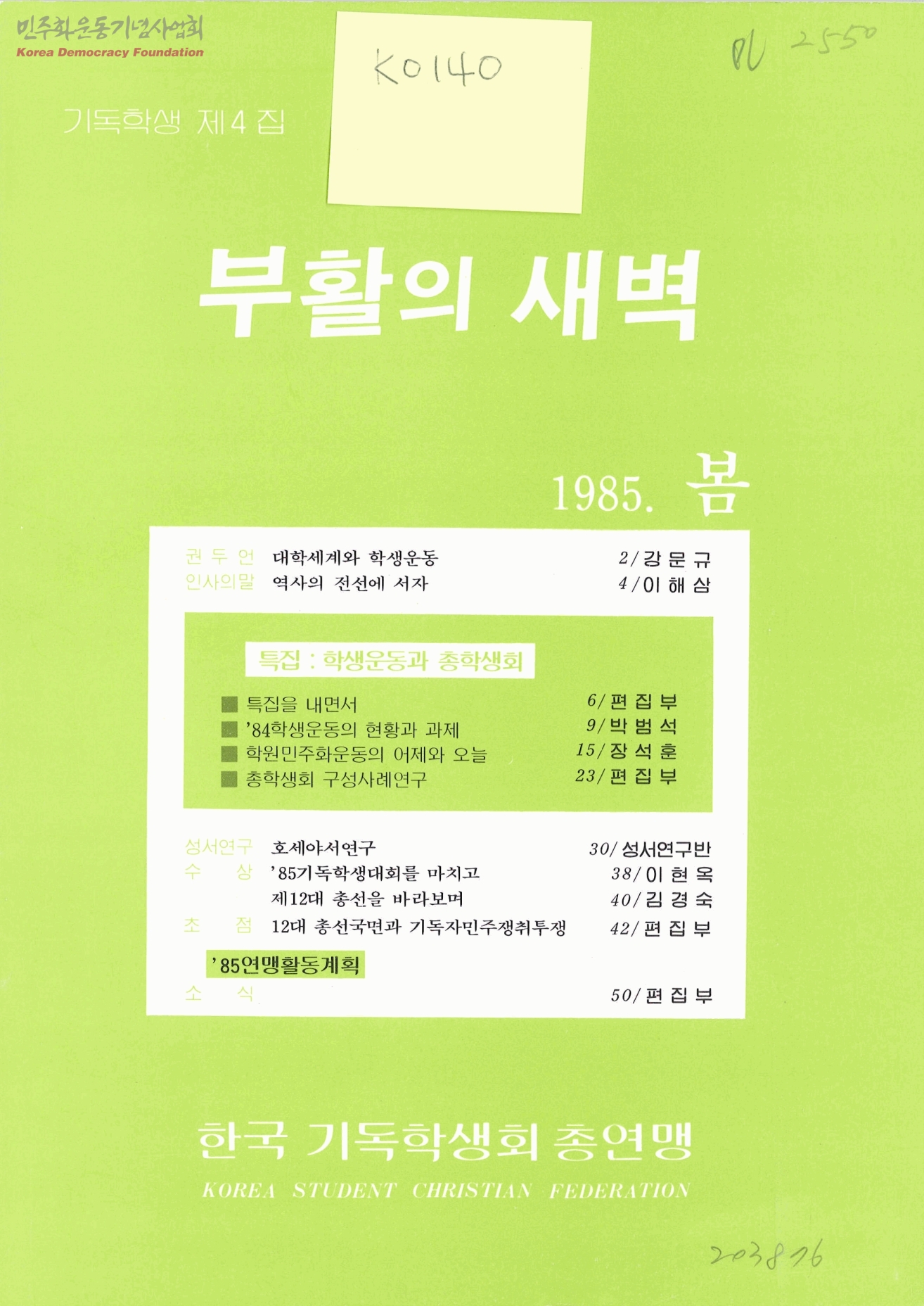 기독학생 제4집-부활의 새벽