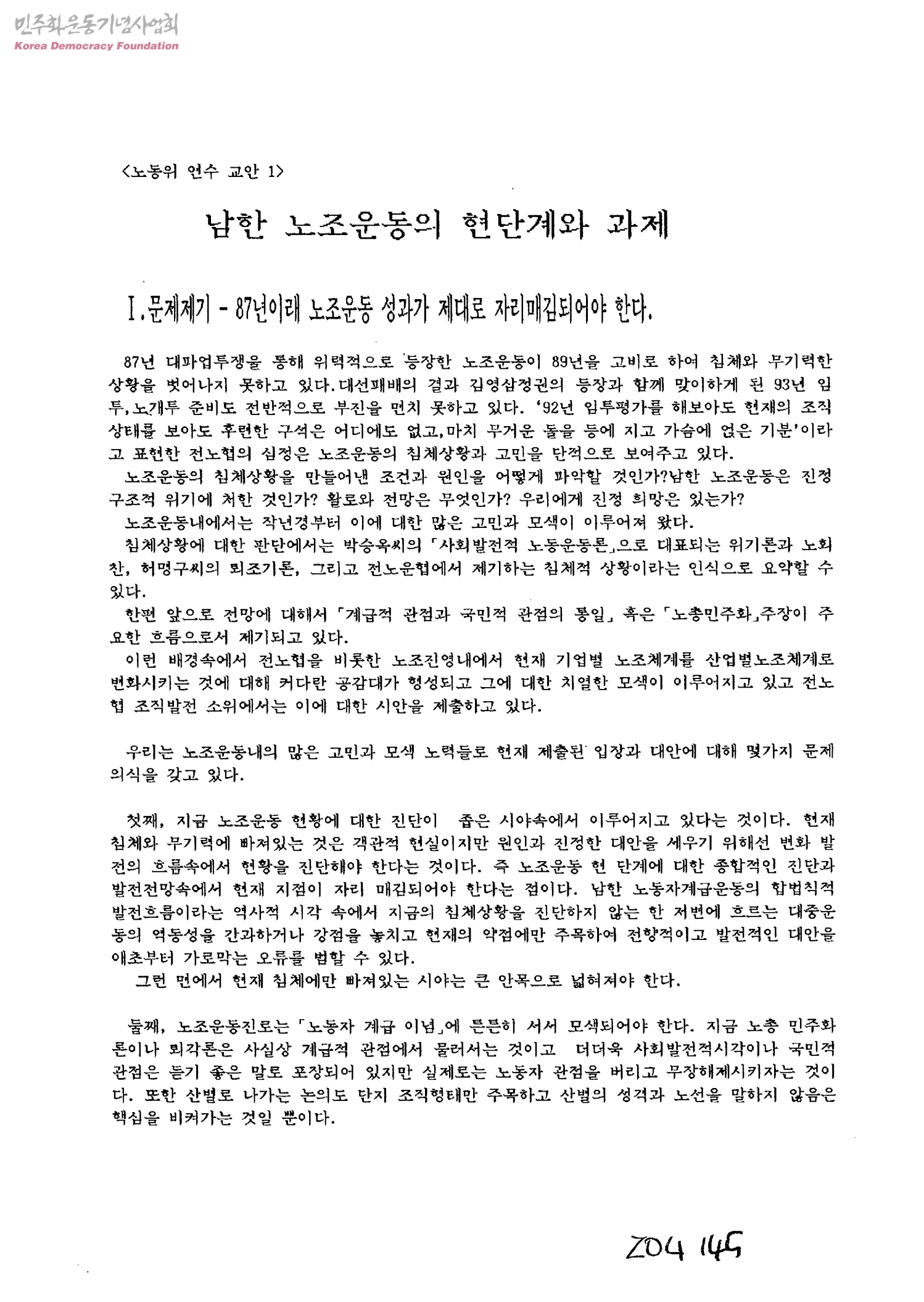 남한 노조운동의 현단계와 과제