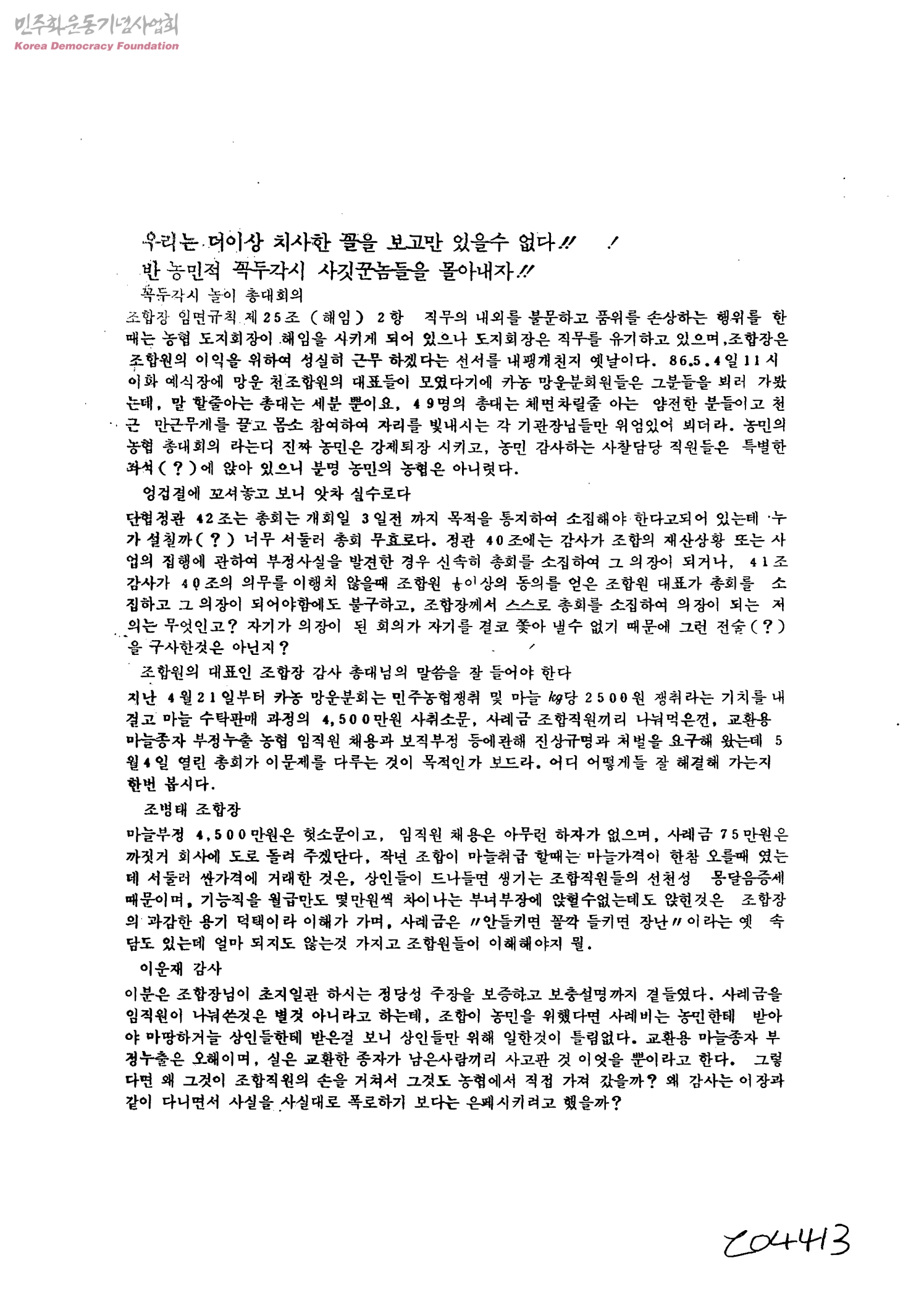 우리는 더 이상 치사한 꼴을 보고만 있을수 없다!! 반 농민적 꼭두각시 사깃꾼놈들을 몰아내자!!-꼭두각시 놀이 총대회의