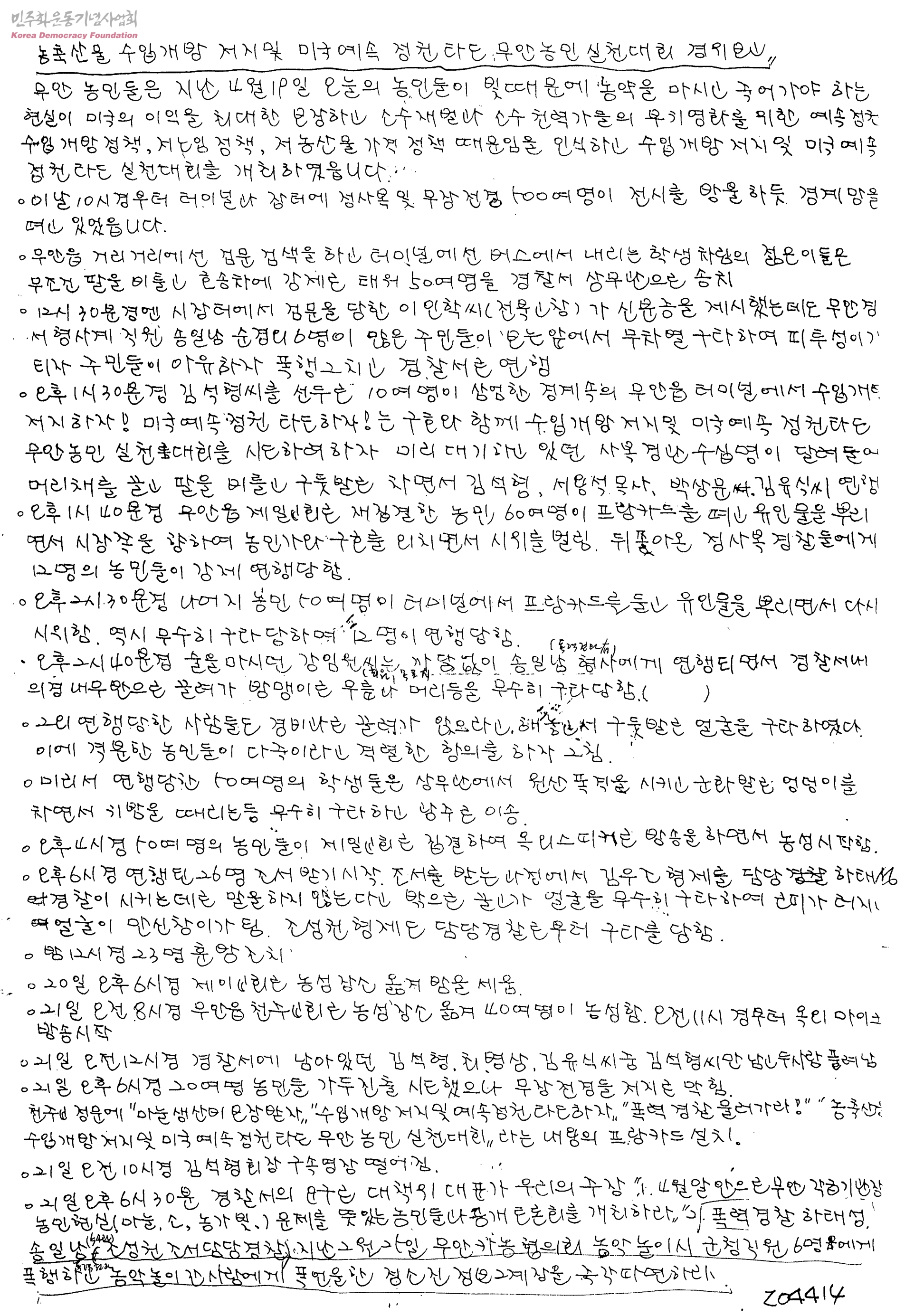 농축산을 수입개방 저지 및 미국예속 정권타도 무안농민 실천대회 경위보고