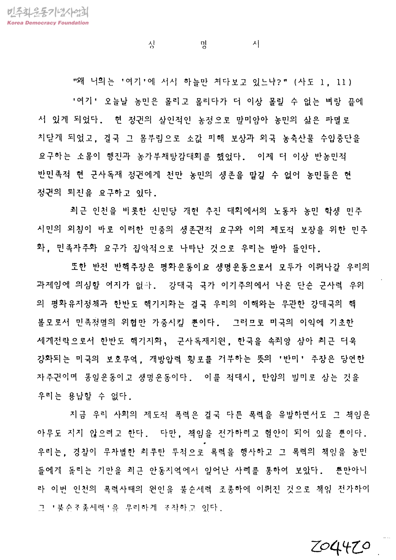 - 생산자 및 기증자가 ‘박용수’인 사진의 사용은 구매신청을 클릭하여 직접 사진 구매 신청을 하실 수 있습니다. 생산자 및 기증자가 ‘경향신문사’인 사진의 사용은 경향신문사 담당자(02-3701-1635)를 통해 구매하실 수 있습니다. 그 외의 생산자 및 기증자는 민주화운동기념사업회 사료관 담당자( h_jungwon@kdemo.or.kr / 031-361-9586 )에 문의바랍니다.