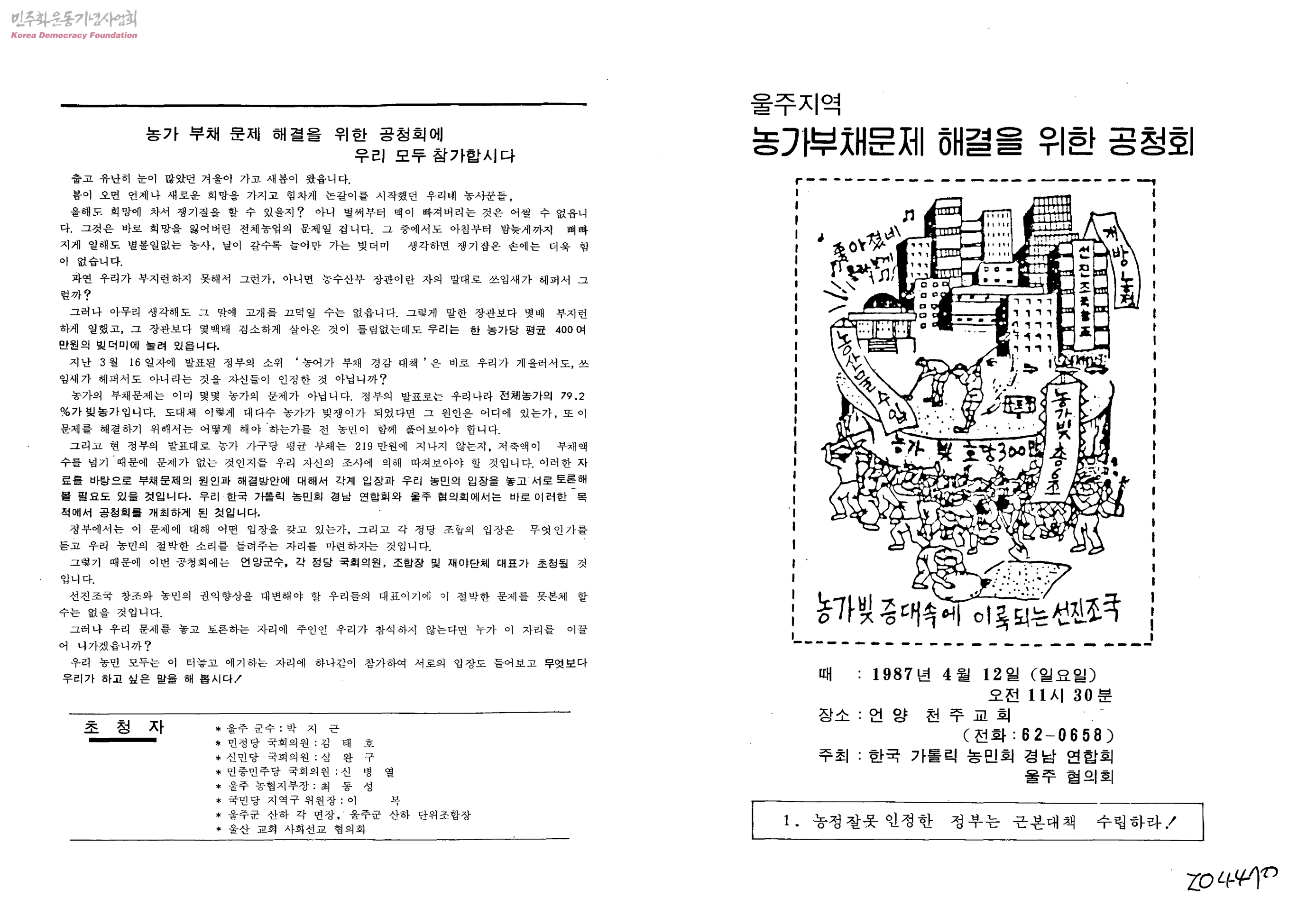 - 1.새발의 피, 언발에 오줌누기-3월 16일 정부의 농어가 부채 경감대책을 보고 2.농가부채문제해결을 위한 공청회에 우리모두 참가합시다