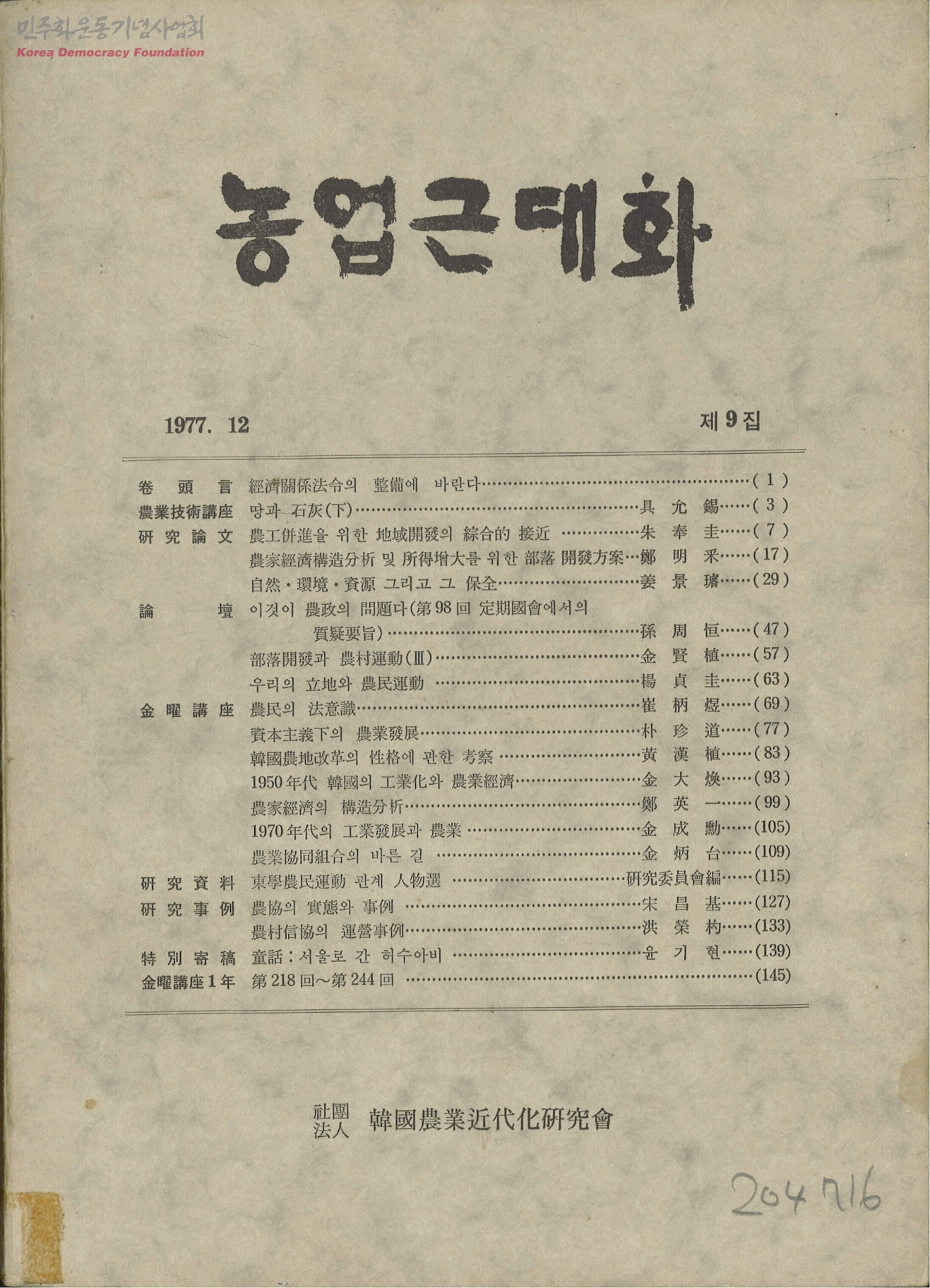농업근대화 제9집