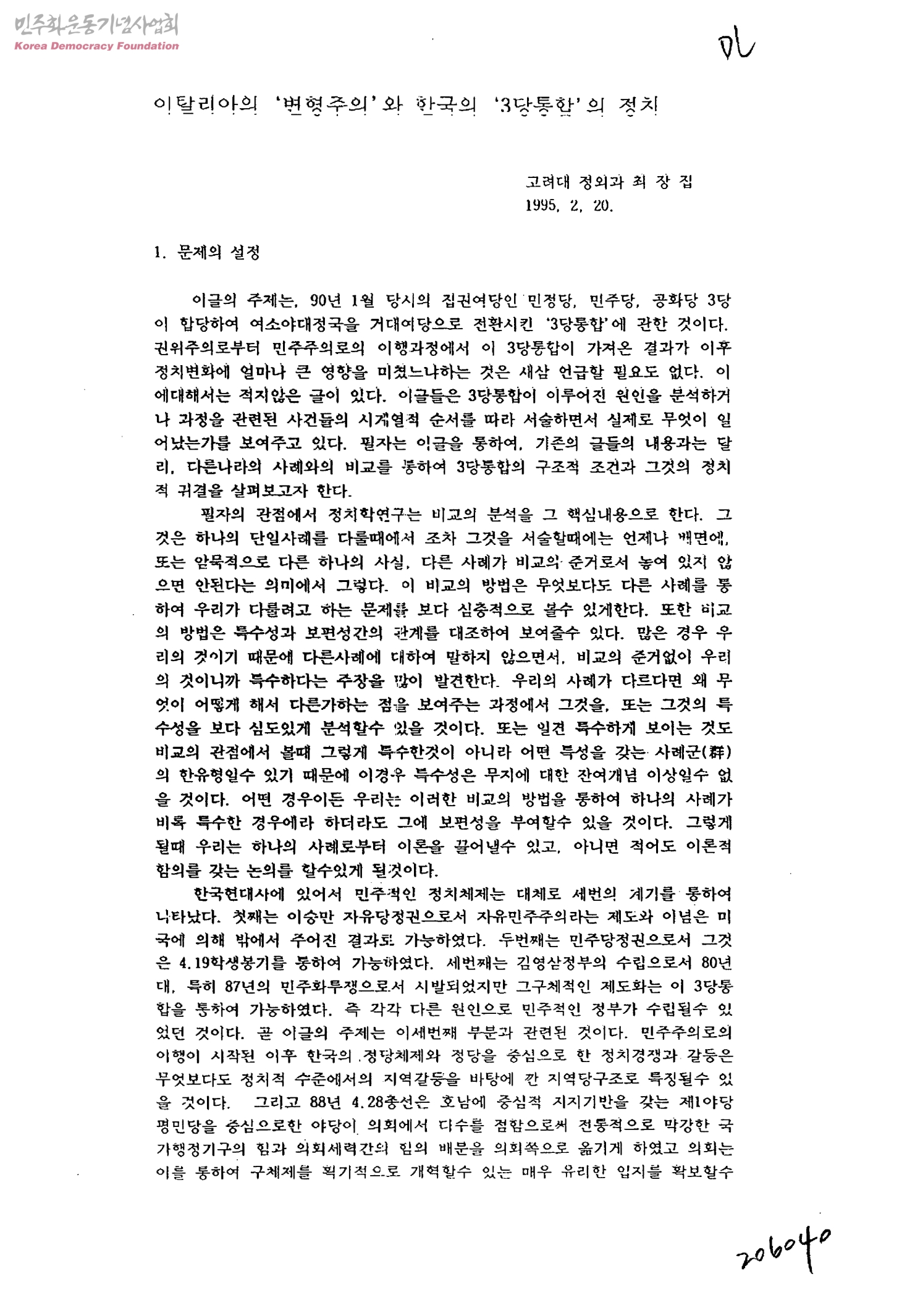 - 고려대정외과최장집