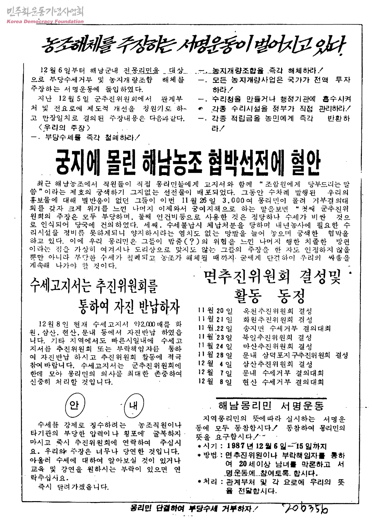 농조해체를 주장하는 서명운동이 벌어지고 있다