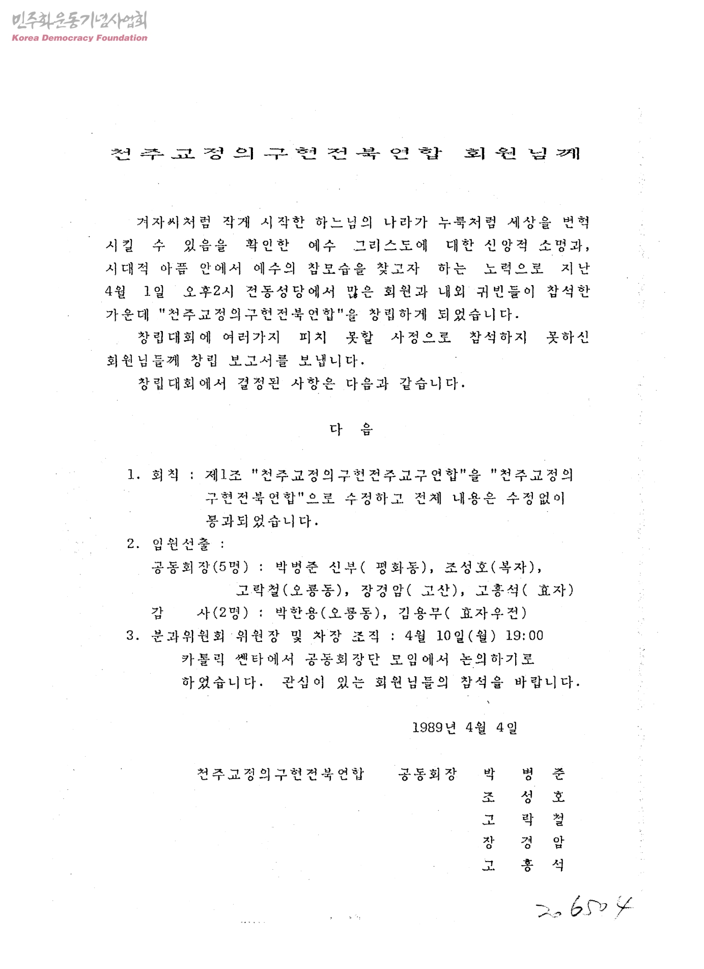 - 천주교정의구현전북연합창립대회 보고서첨부