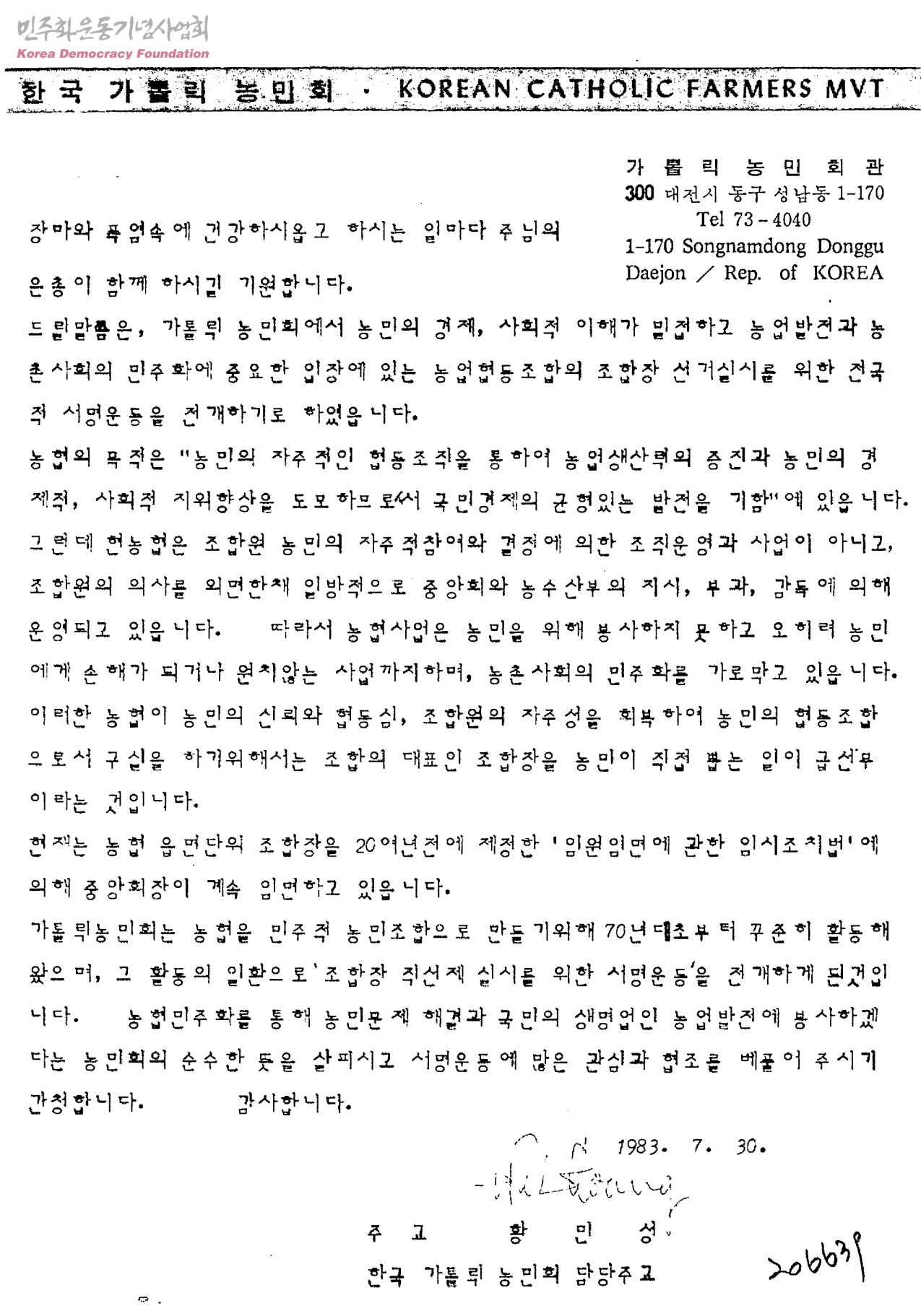 [농업협동조합 조합장 직선제 실시를 위한 서명운동 협조요청문]