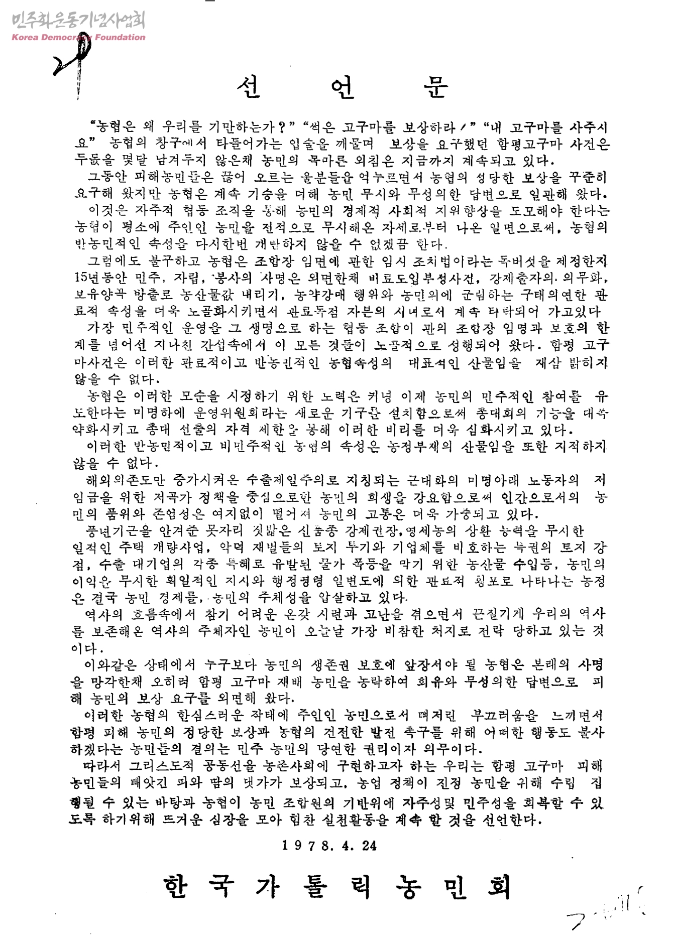 선언문[함평고구마 사건 피해보상과 민주적 농업정책, 농협민주화 요구 관련]
