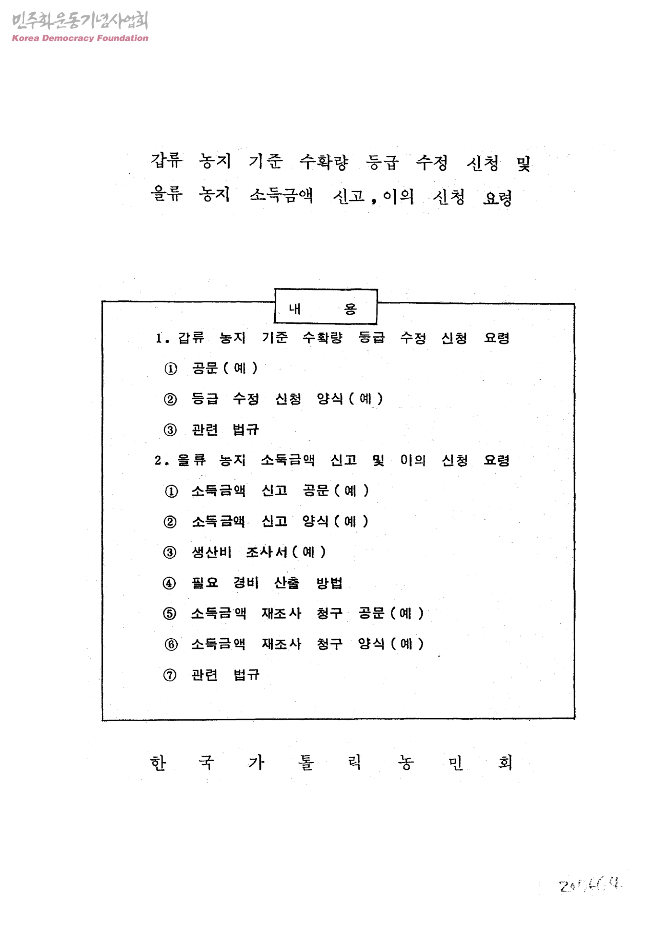 - 농지 수확량 등급 수정 신청과 소득금액 신고에 대한 관계 법규와 신청 요령 언급
