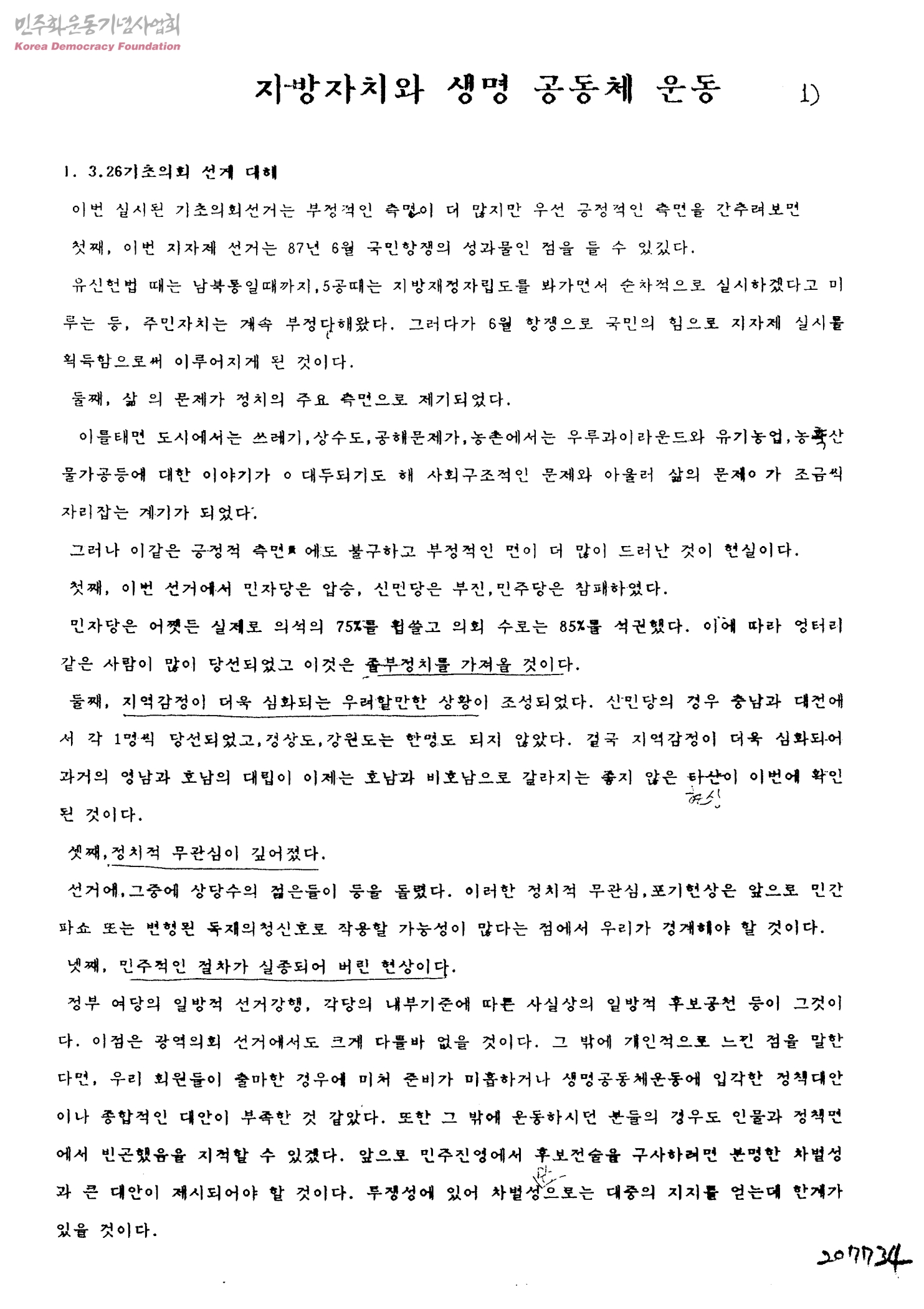- 1. 3.26기초의회 선거에 대해 2. 지방자치제의 문제점 3. 현재 정세와 광역의회 4. 지자제와 생명공동체 운동의 과제